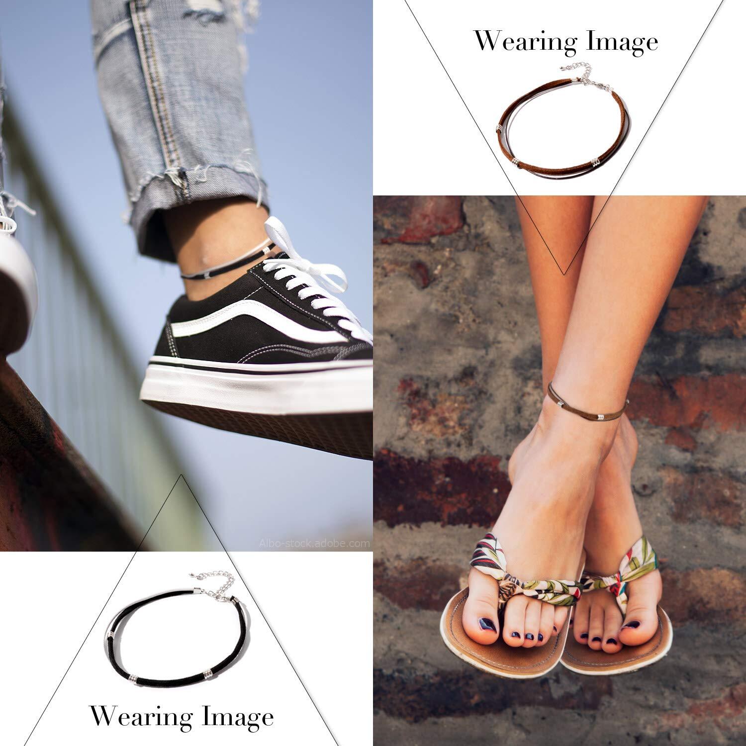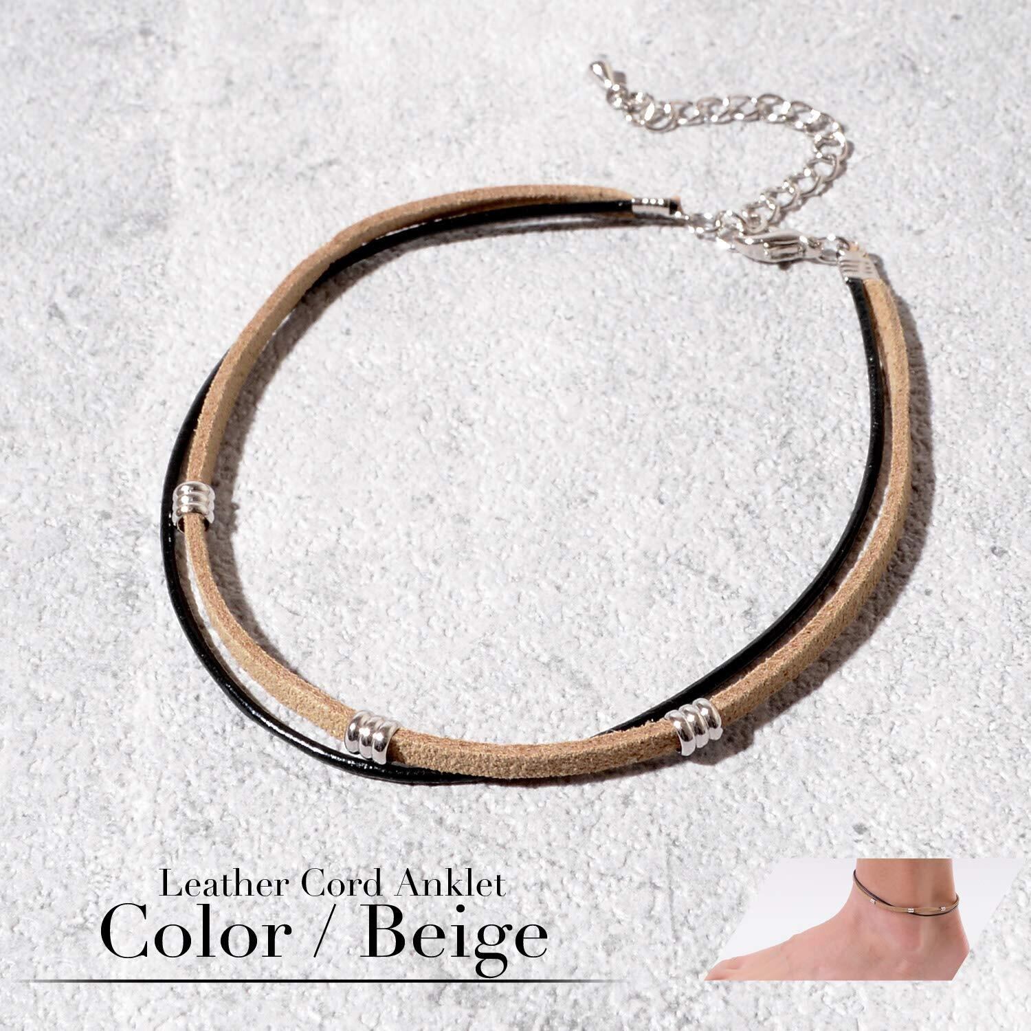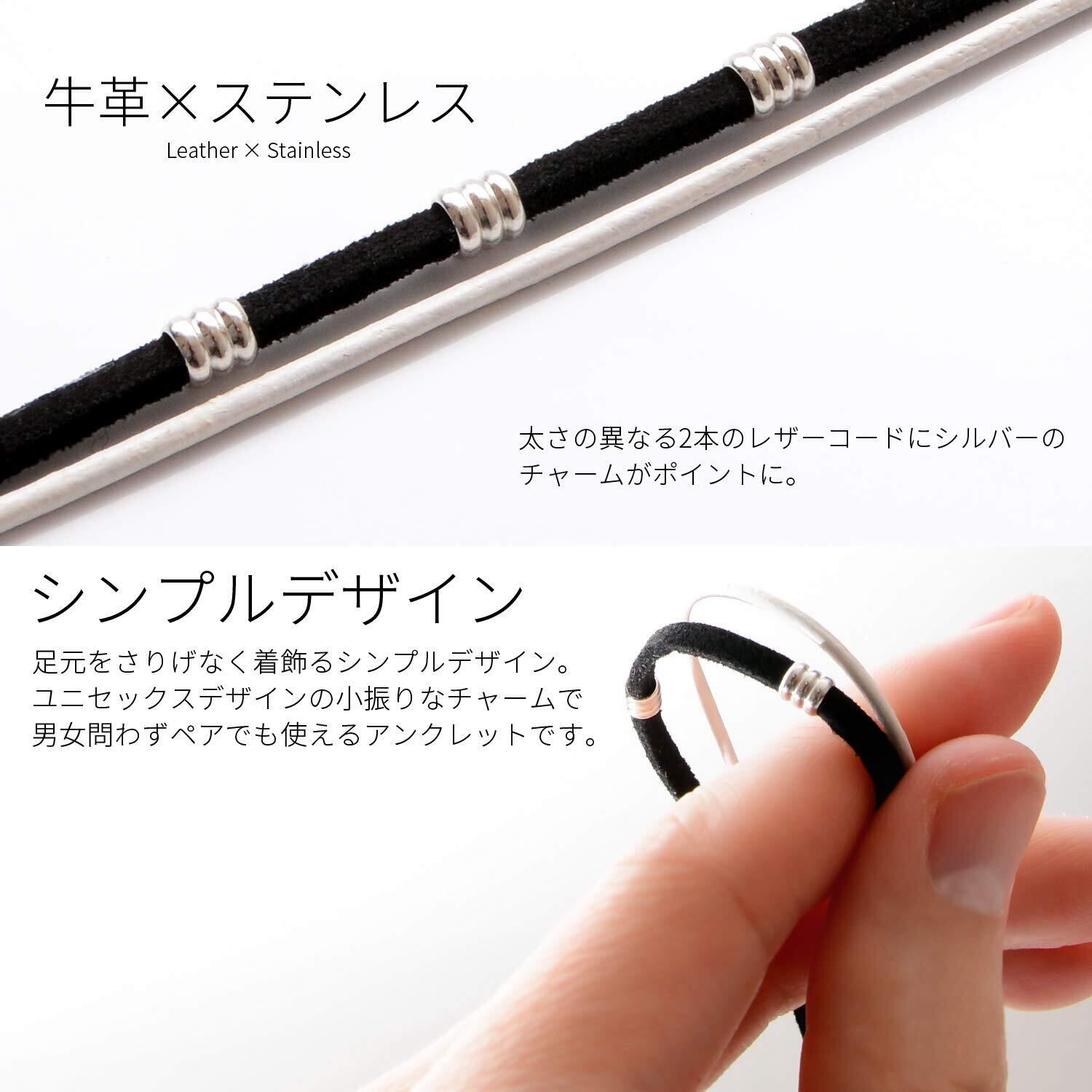 [ナル] 本革 レザー コード アンクレット メンズ レディース ペア おそろい カップル つけっぱなし シンプル 人気 ブランド 2連