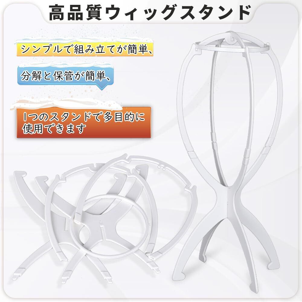 【新着商品】Vigorousウィッグスタンド 白い 高さ35cm 折り畳み式 組み立て式 ウィッグネット 黒 ウィッグ専用ネット ウィッグキャップ 携帯便利 男女兼用 ウィッグケア4点セット | gsmshop