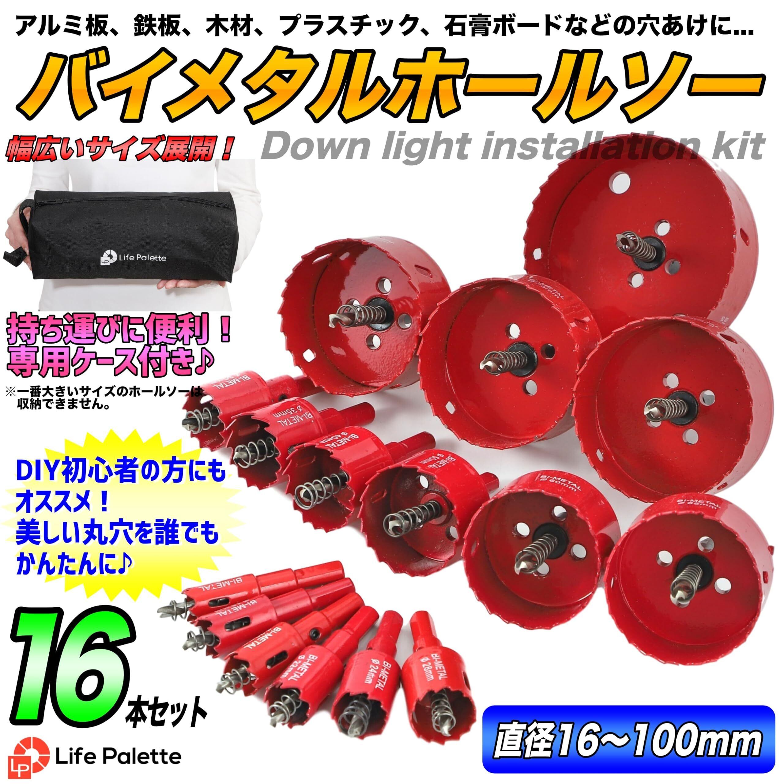 ライフパレット バイメタル ホールソー ホルソー セット 穴あけ 切削 木工 工具 工具ケース付き (16, 16 19 20 22 24 28 30 35 40 50 60 65 70 75 80 100mm)