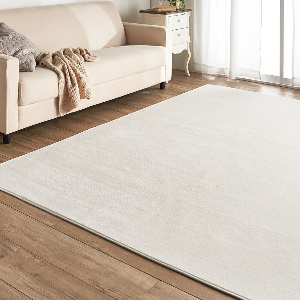 アイリスプラザ フランネルラグ アイボリー 200×250㎝ 滑り止め付き ラグ 洗える ラグカーペット マット カーペット対応 防ダニ フランネル さらフワ触感 おしゃれ 北欧 じゅうたん