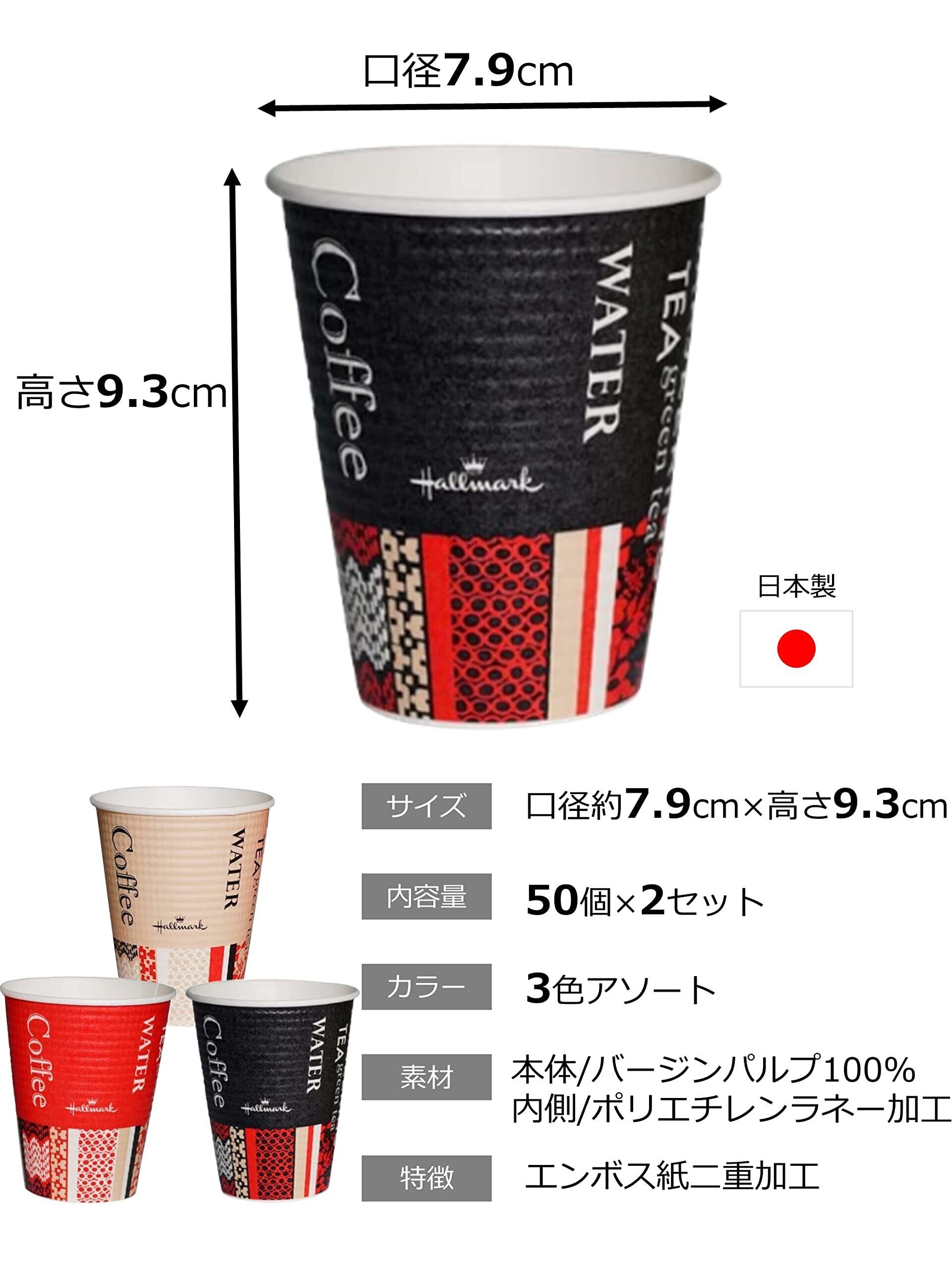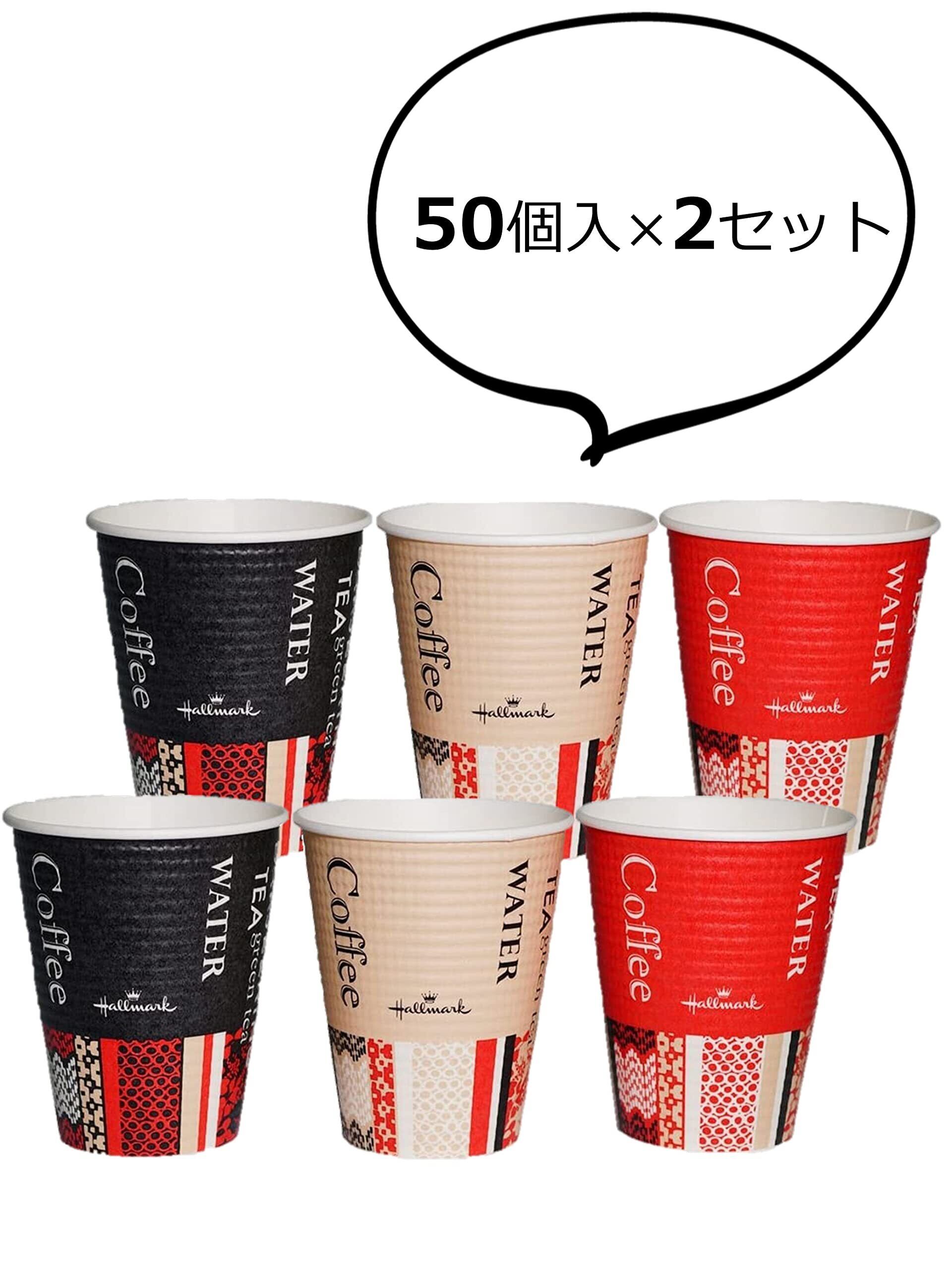 【特価セール】サンナップ 業務用 断熱 紙コップ 260ml 50個入×2セット エンボス カップ ホールマークカフェ 容量 目盛り 付き 3色(ガラ)込み 日本製 C2650EC アソート | gsmshop