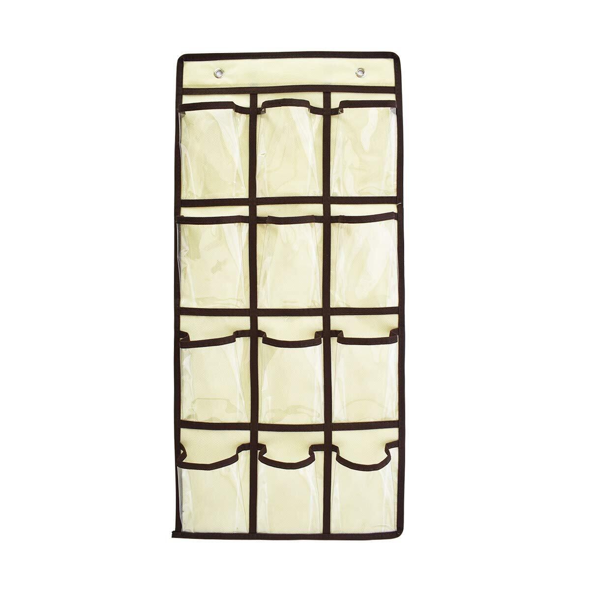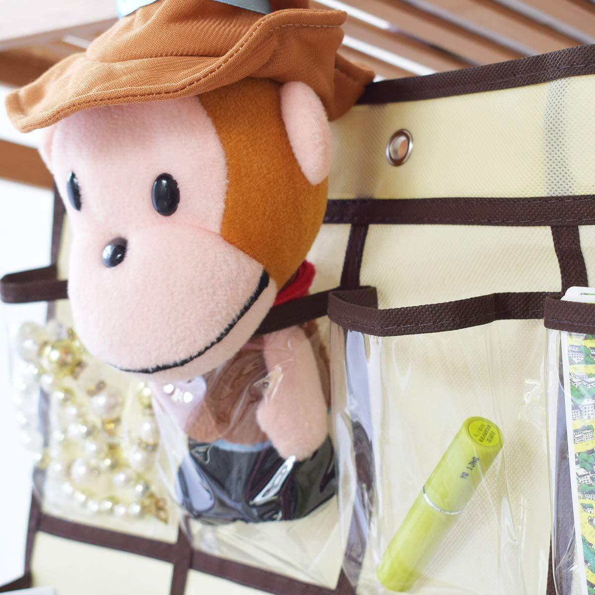 SURCHAR ウォール ポケット カレンダーポケット クリア 壁掛け 収納 ポケット 透明ポケットカレンダー 吊り下げ ポケット クローゼット 小物 収納 ポケット 収納袋 フック付き 2サイズ 12/36 ポケット (ブラウン,12格)