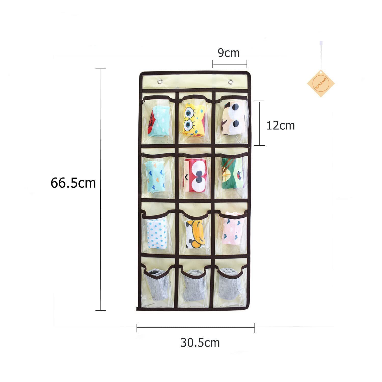 【2022最新】SURCHAR ウォール ポケット カレンダーポケット クリア 壁掛け 収納 ポケット 透明ポケットカレンダー 吊り下げ ポケット クローゼット 小物 収納 ポケット 収納袋 フック付き 2サイズ 12/36 ポケット (ブラウン,12格) | gsmshop
