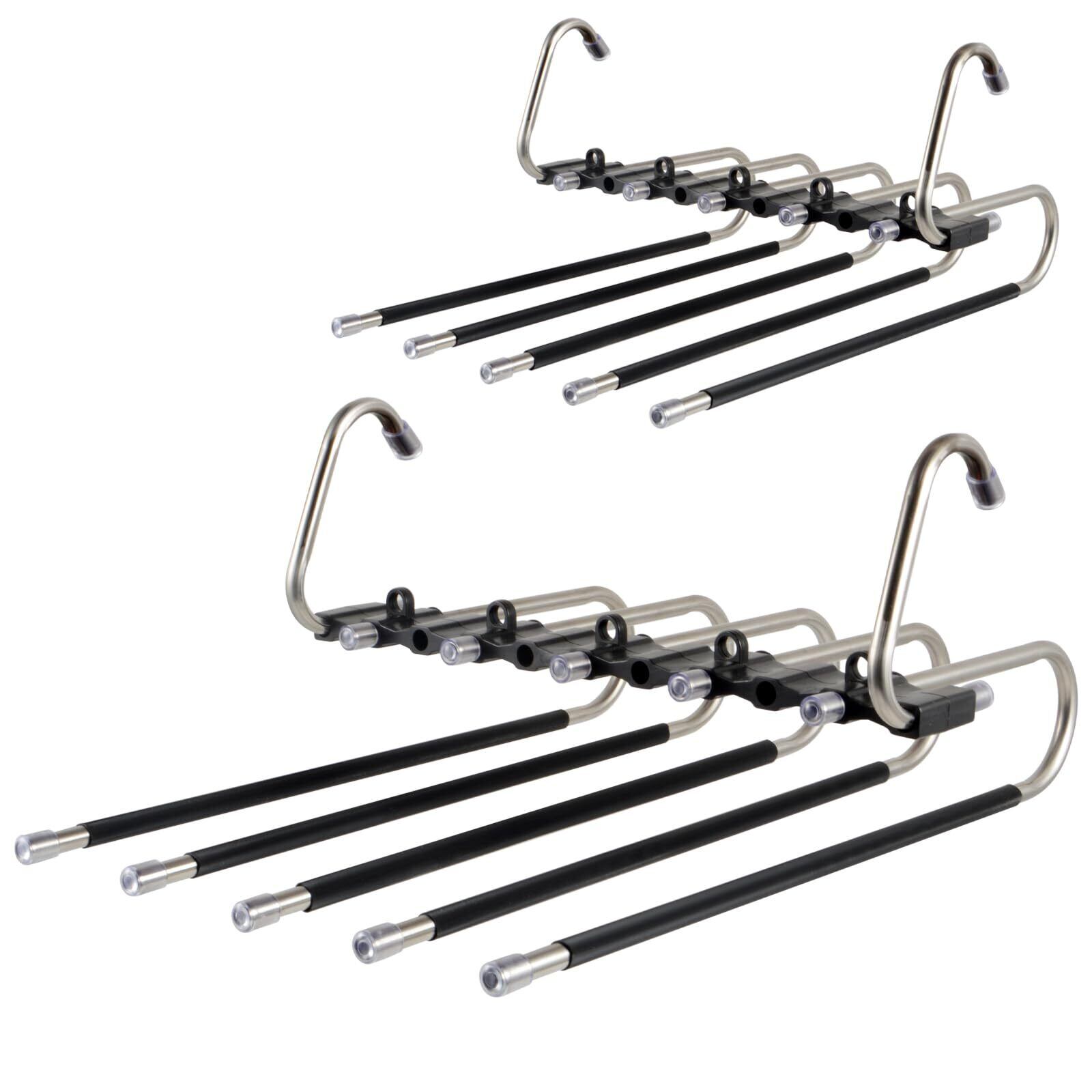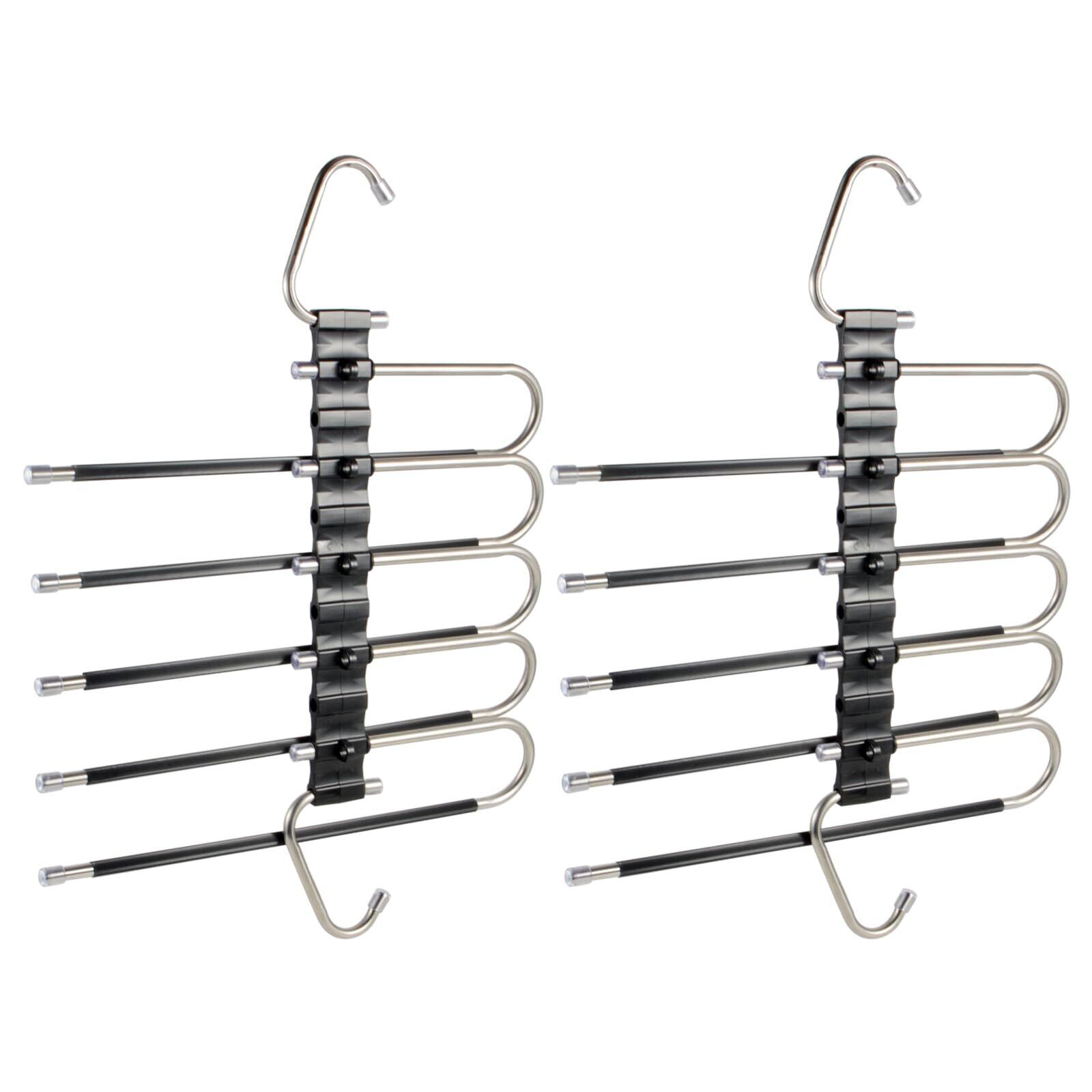 ズボンハンガー 2本セット スラックスハンガー ズボン収納 すべらない 折りたたみ 省スペース ステンレス 軽量 縦横両用 物干し 洗濯 整理 OMAYOU (5段)