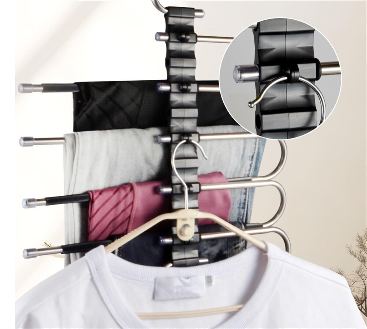 【在庫セール】ズボンハンガー 2本セット スラックスハンガー ズボン収納 すべらない 折りたたみ 省スペース ステンレス 軽量 縦横両用 物干し 洗濯 整理 OMAYOU (5段) | gsmshop