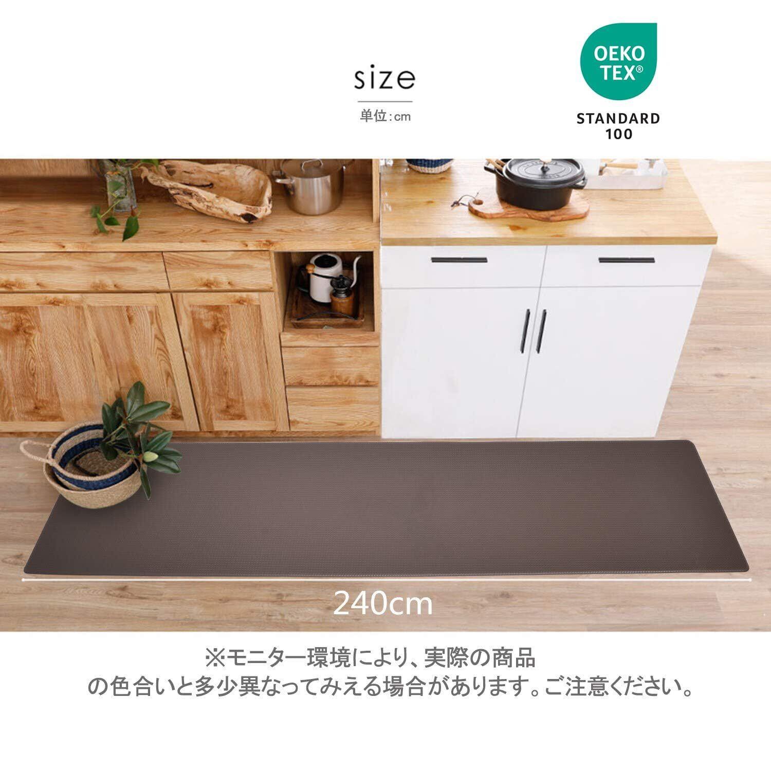 Baibu Home キッチンマット 拭ける 240 踏み心地いい 台所マット 厚さ8mm ブラウン はっ水 洗濯いらず ロング 床マット 滑らない ポリ塩化ビニル素材