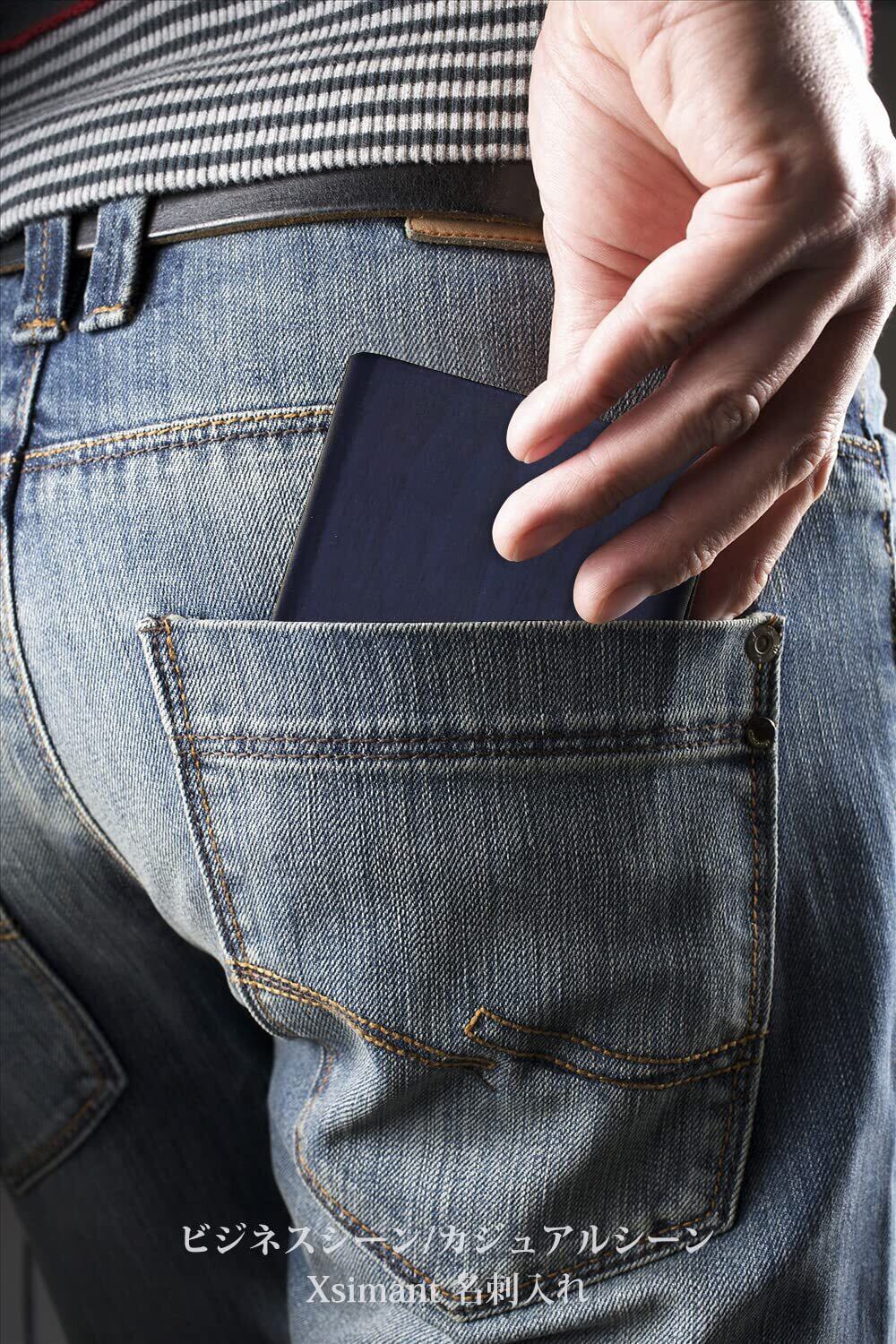 【在庫セール】[Xsimant] 名刺入れ 桜 木柄 角が折れない 名刺ケース 男女兼用 マグネット式 1秒開閉 ビジネス (ネイビー)