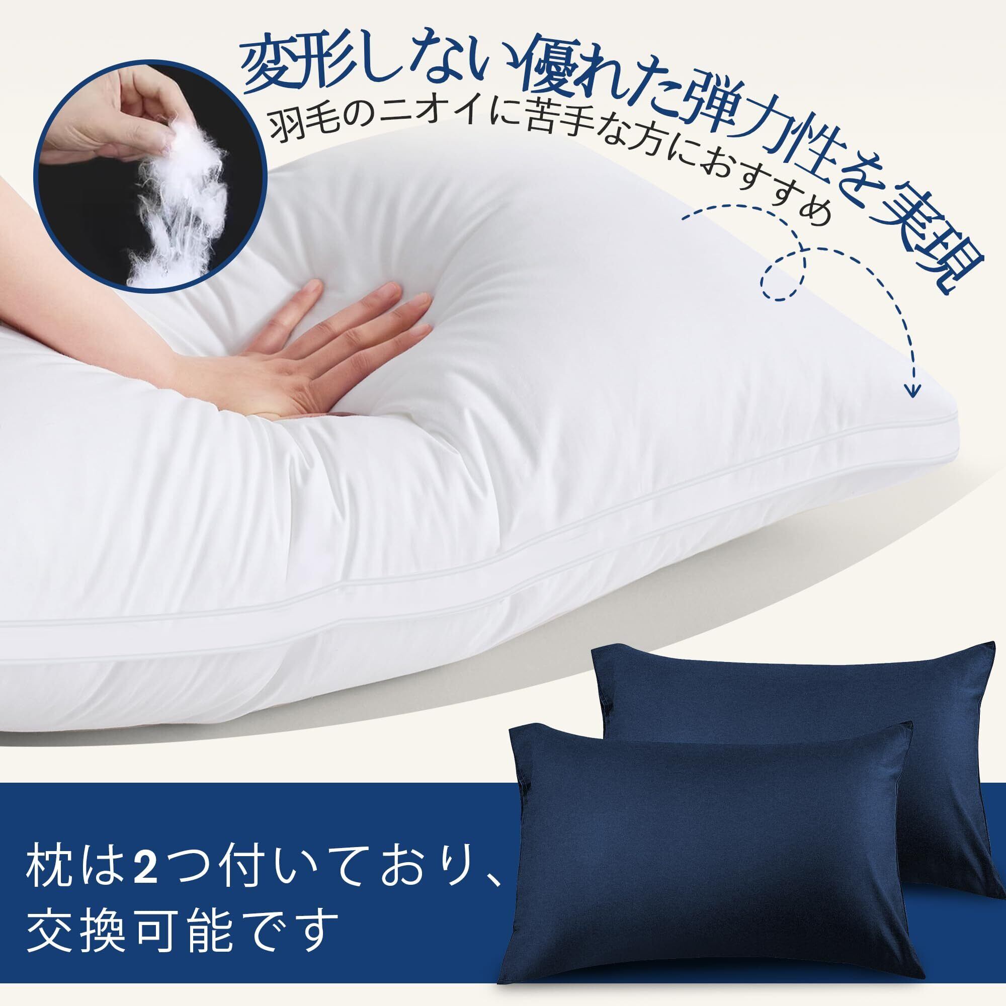 【 限定ブランド】Bolinker 枕 まくら 綿100% ホテル い ホテルまくら 通気性 高反発枕 丸洗い可能 両面 柔らかい (43*63*20 CM1個入)(ネイビー枕カバー2個付属)