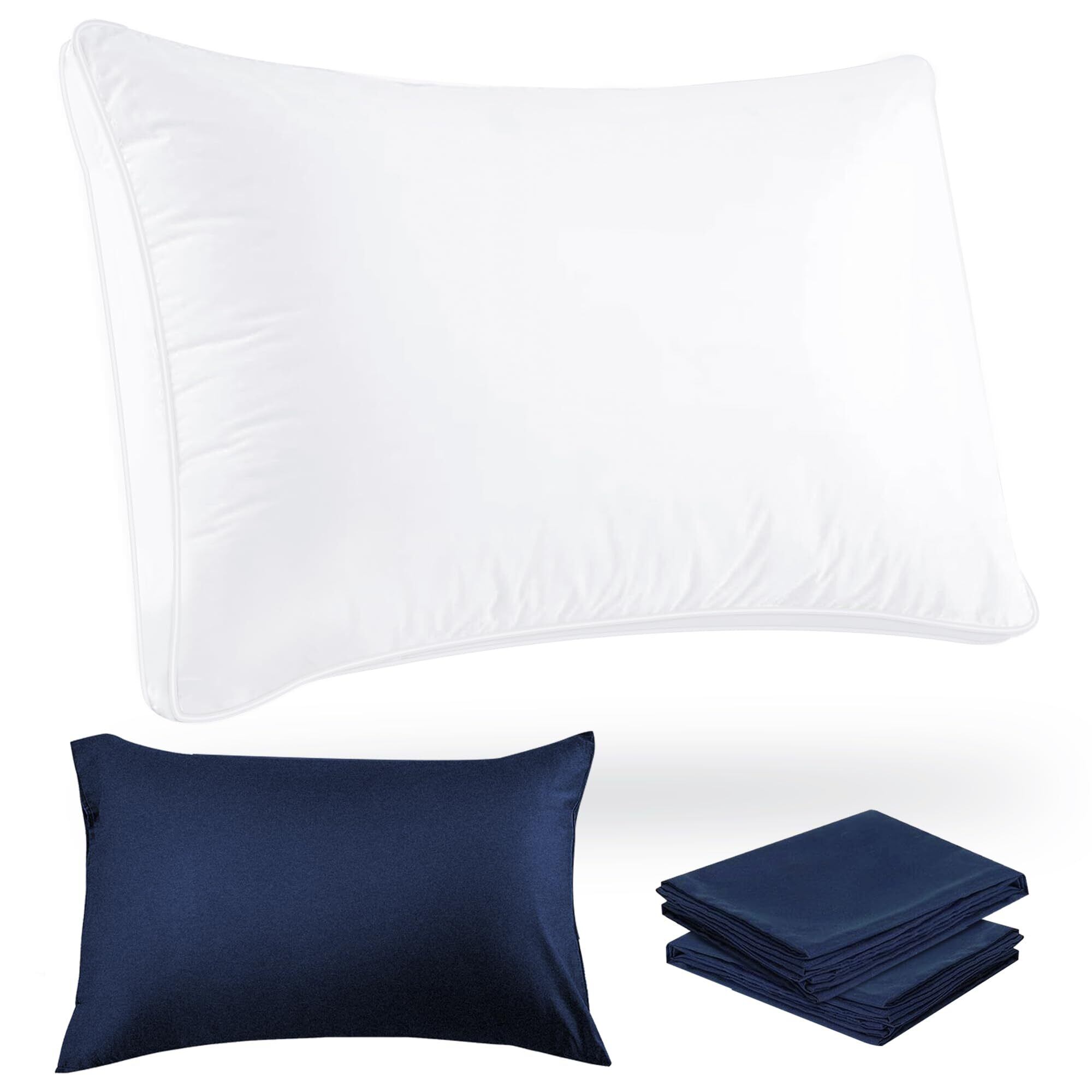 【新着商品】【 限定ブランド】Bolinker 枕 まくら 綿100% ホテル い ホテルまくら 通気性 高反発枕 丸洗い可能 両面 柔らかい (43*63*20 CM1個入)(ネイビー枕カバー2個付属) | gsmshop