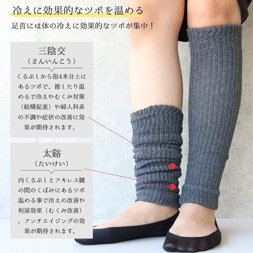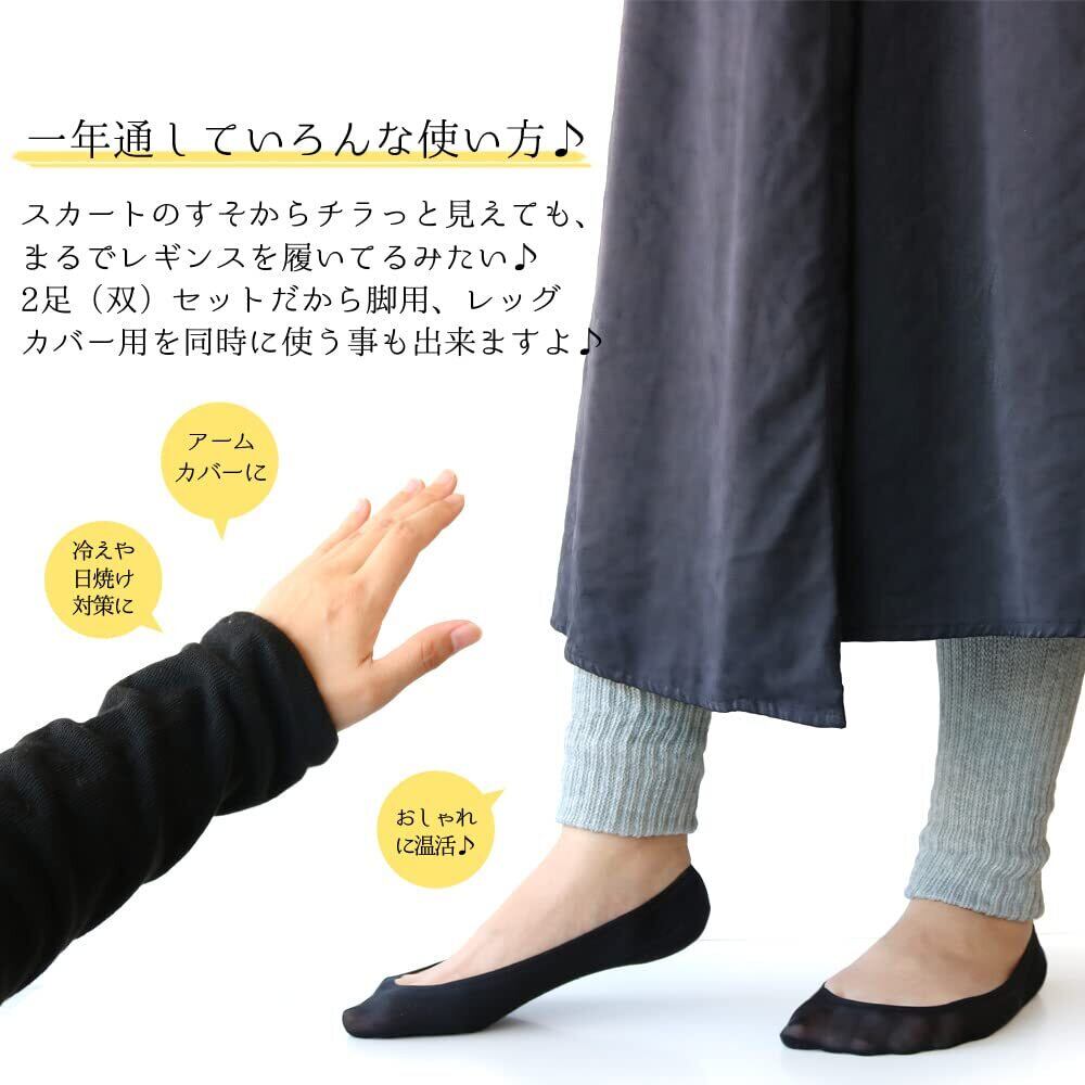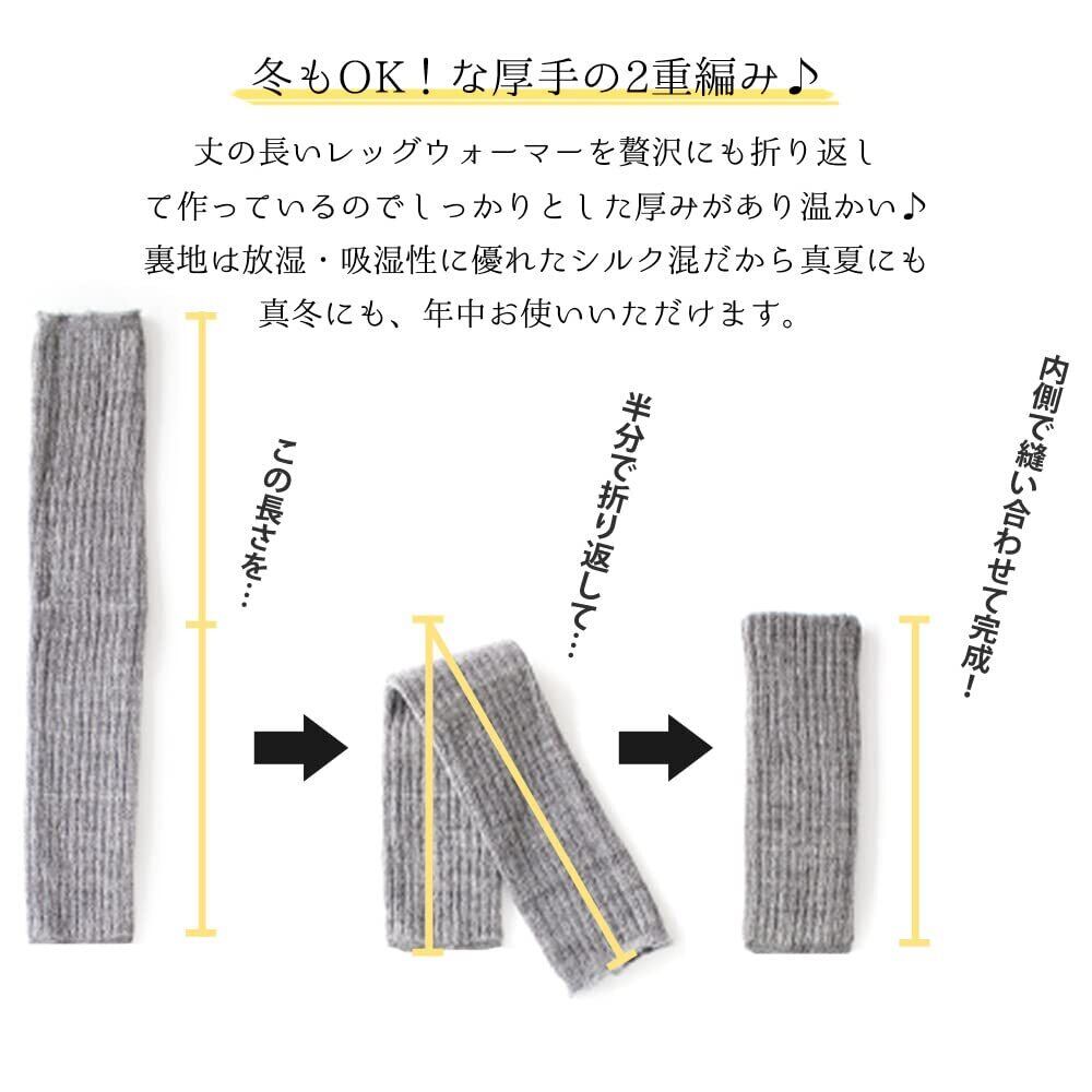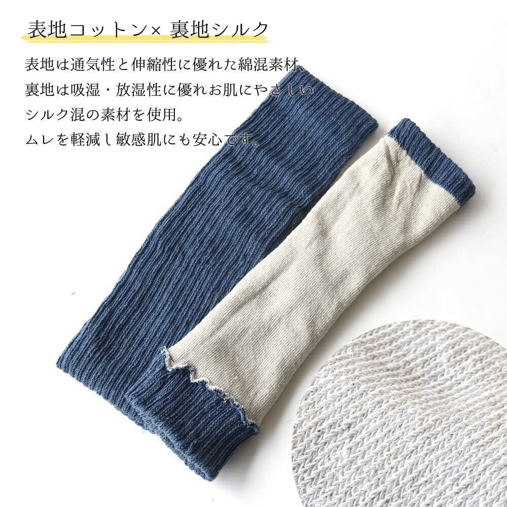 [box408] レディース レッグウォーマー 内側シルク 綿混 2足セット 温活 36cm シンプル