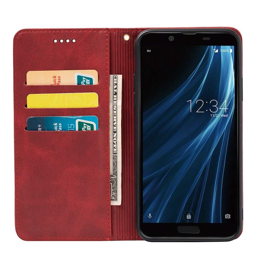 AQUOS sense2 / SHV43 / SH-01L/ SH-M08 /Android One S5 ケース 手帳型 カバー PUレザー カード収納 財布型 耐衝撃 ケース マグネット スタンド機能付き 5色 (AQUOS sense2 /Android One S5 ケース 手帳型) (レッド)