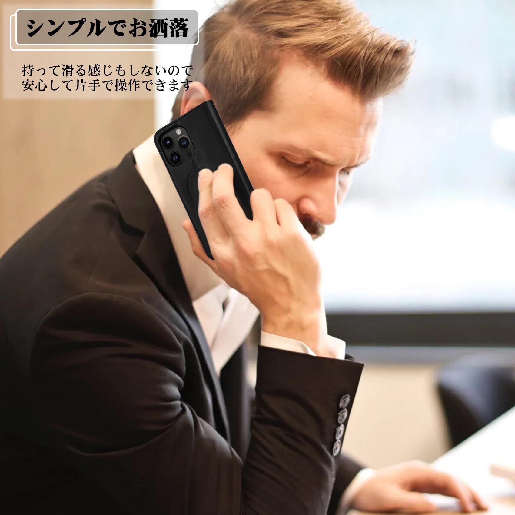 ビジネス専用ケース:衝撃吸収性と柔軟性に優れたTPU素材を採用し、画面より少しだけ高く設計されたコーナーが全周をカバーしているのであらゆる角度からの落下に対して安心感が増やしています。オシャレ大人のiPhone 16 Pro Max 用 手帳型ケースです。
