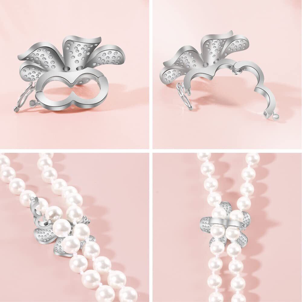 精緻で繊細: 複数の丸みを帯びた繊細な真珠で構成されたパール ネックレスは、花の形をした留め具を合わせ、太陽の光を受けてシルバーネックレスは輝いています