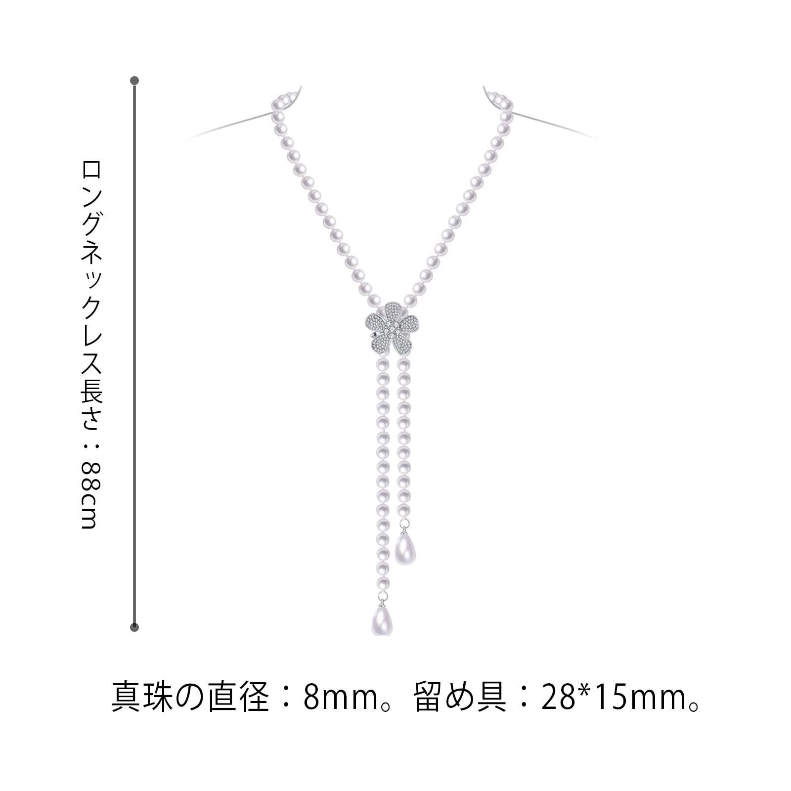 商品の詳細: ロングネックレス長さ:88 cm、真珠の直径:8 mm。留め具:28*15 mm。素材:貝パール、ジルコニア。付属品:精美な包装ケース