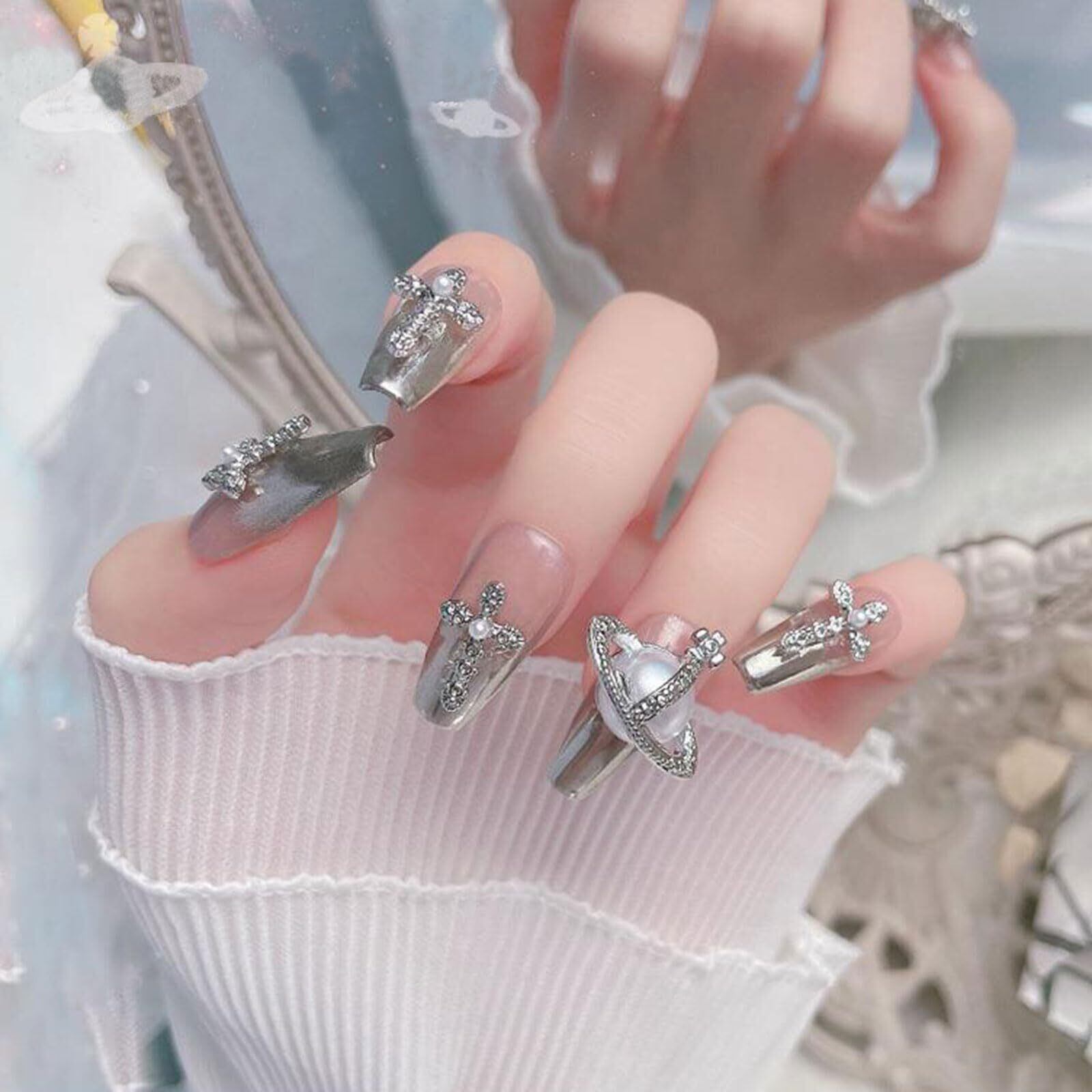 【人気商品】ラインストーン ネイルパーツ 32個セット 3D 立体 合金 惑星 ハート パール クロス ネイルストーン メタル シルバー ジュエリーパーツ ネイルアート デコパーツ ハンドメイド (惑星) | gsmshop