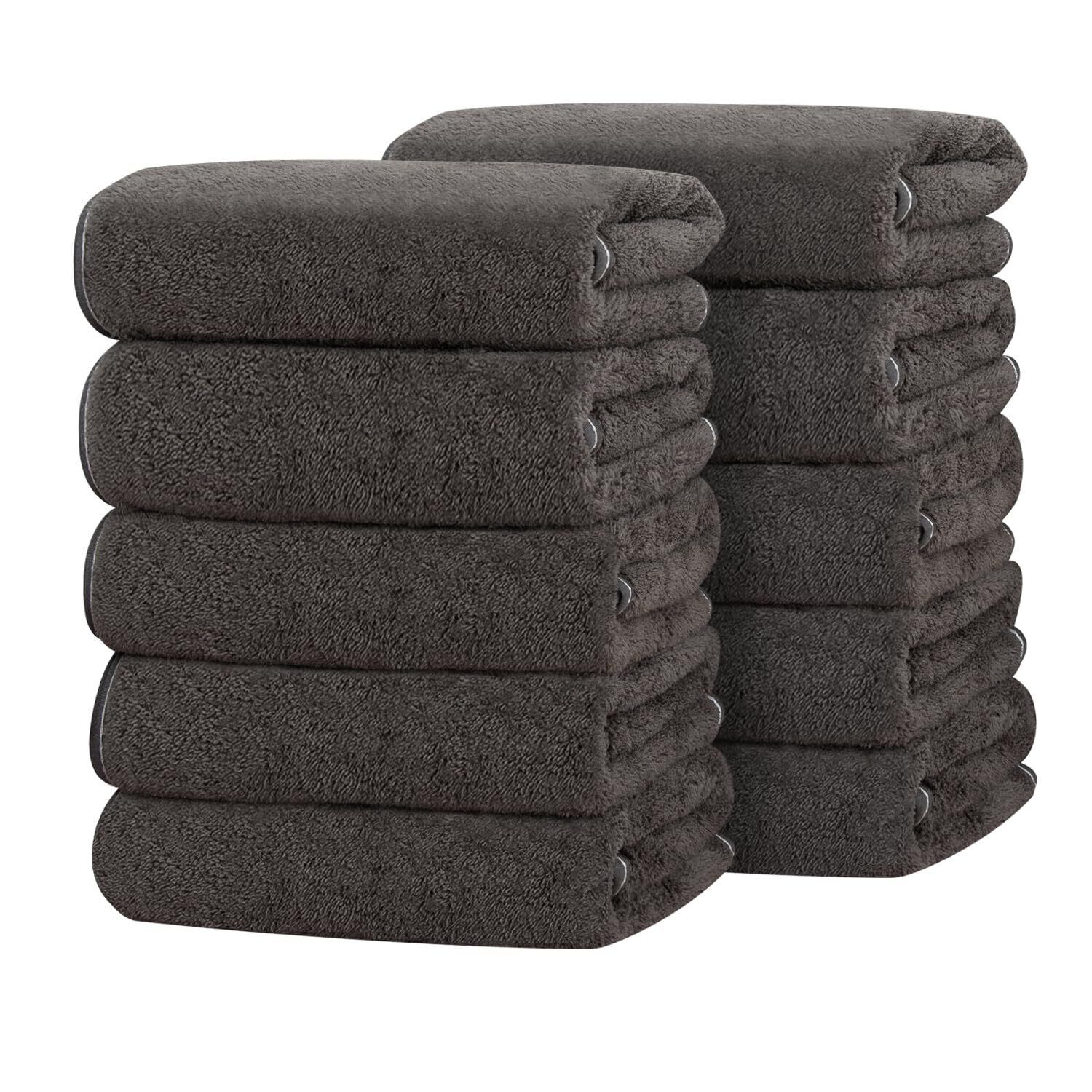 フェイスタオル マイクロファイバー 10枚セット タオル 約35X75cm ふわふわ やわらか 吸水 速乾 耐久性 家庭 ホテル サロン スポーツ 業務用 (ダークグレー)