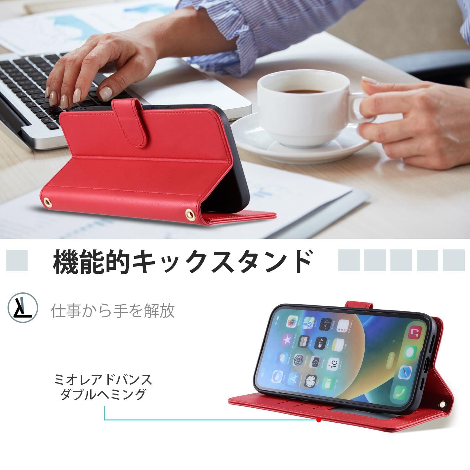 【カード収納機能&ストラップ付き】カードレシートや名刺など、丈夫で安全な折り畳み式iphone 16e ケース 第四世代を収納できます。マグネットはケースの側面に内蔵されており、カードに直接触れないため、磁気カードの損傷を心配する必要はありません。肩掛けのストラップの長さが調整しやすいのです、特にポケットがない服が多いのでストラップ付きなのがとても便利です。お出かけ時はショルダーに、家でゴロゴロする時はご自由に外します。