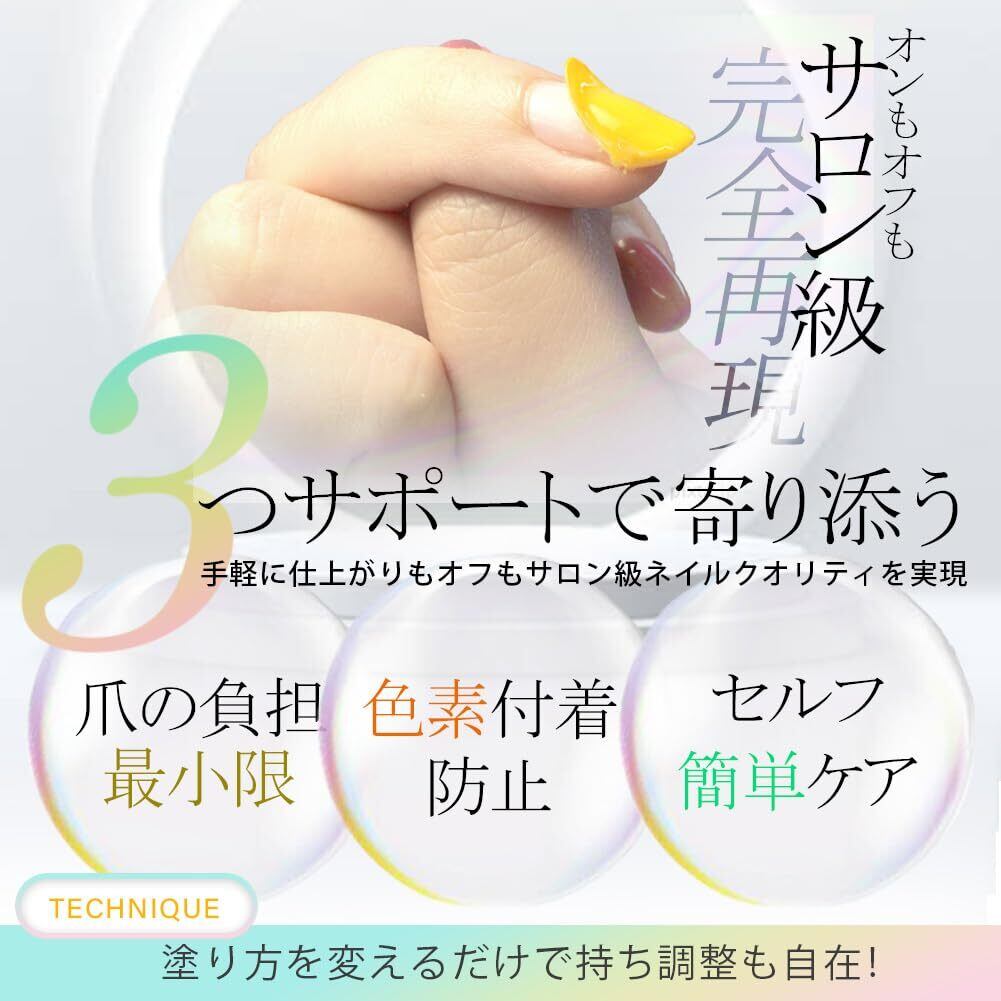 アセトン不要、オフは剥がすだけ。爪に負担を最小限に。