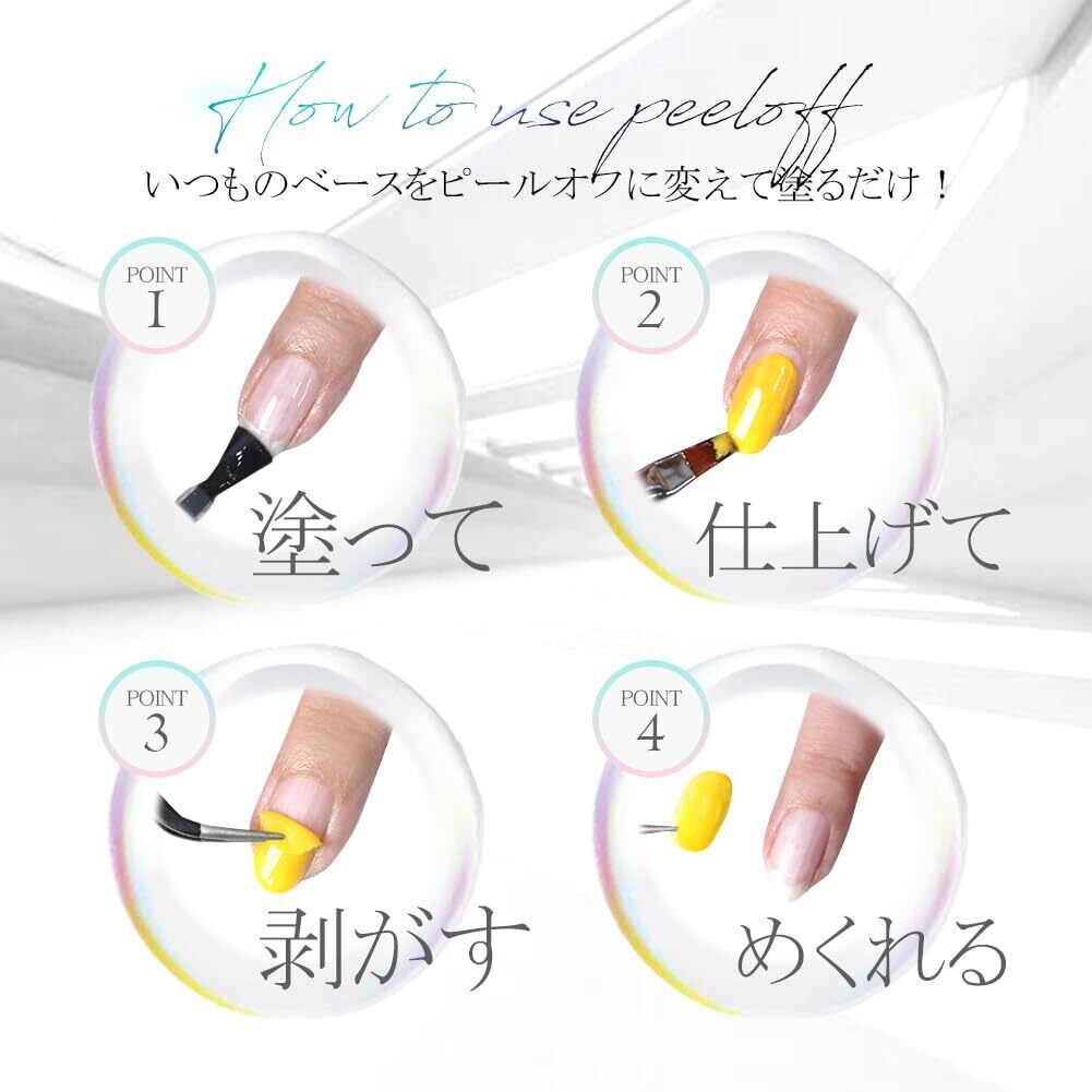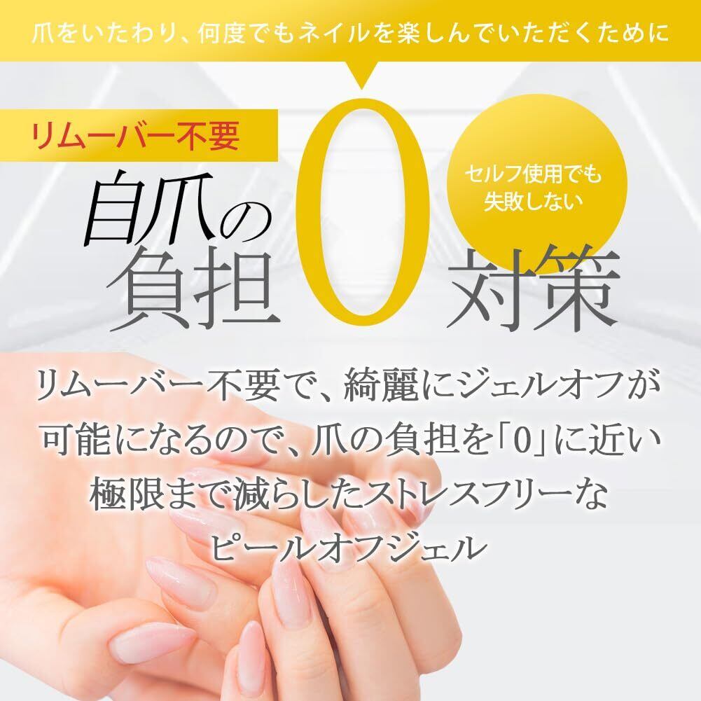 自爪の負担がゼロ。シールのように剥がれるベースジェルだから爪への負担は最低限。ピールオフなら1日だけのオンオフや練習にも最適!