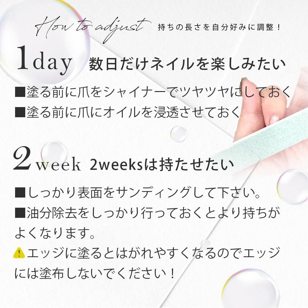 数日だけジェルネイルを楽しみたい、ジェルネイルオフに時間をかけたくない、簡単にオフができて尚且つできるだけ長持ちさせたい、そんな方にオススメです。