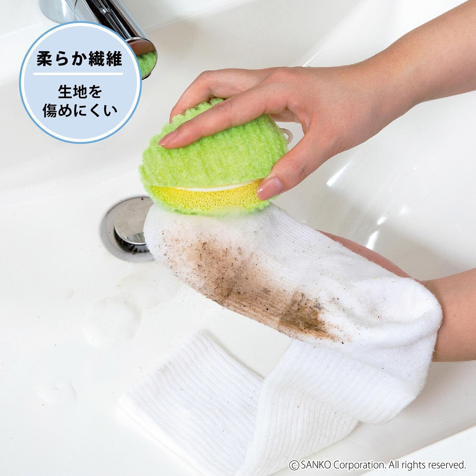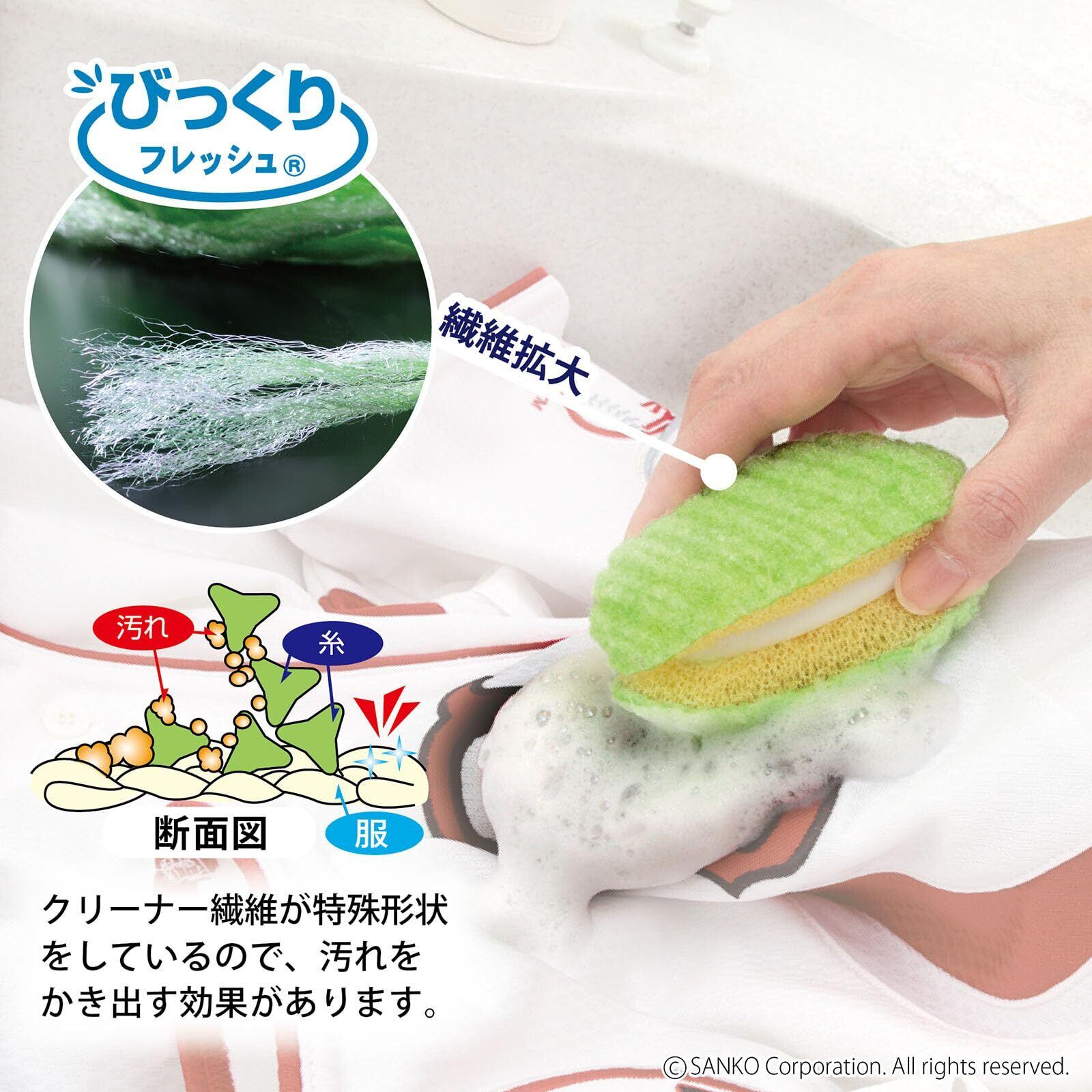 サンコー 洗濯用品 泥汚れ ブラシ 洗濯ブラシ ちょこっと洗濯 スポンジ 両面 握りやすい びっくりフレッシュ グリーン 日本製 BO-82