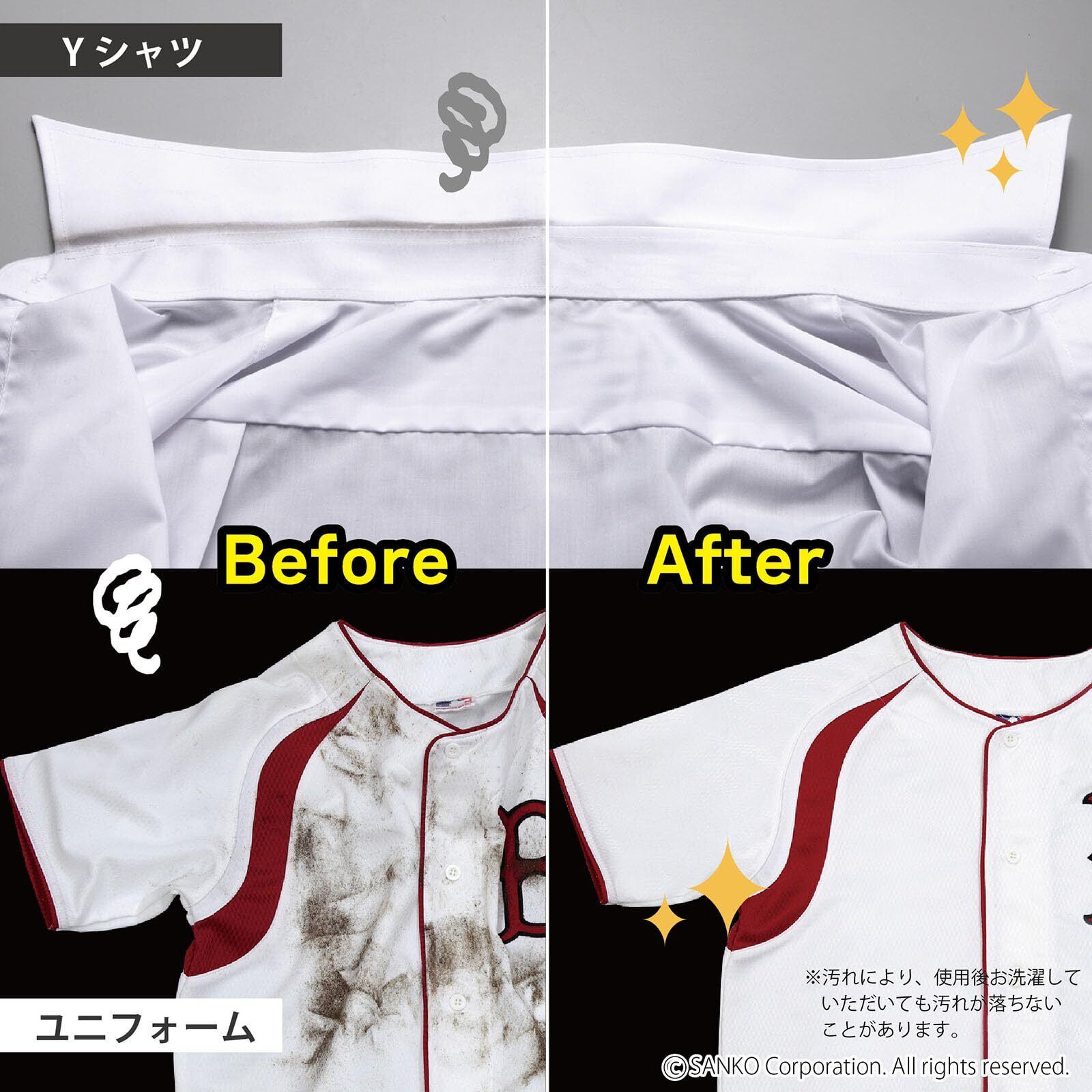 スポーツの泥汚れ、食べこぼし、Yシャツ、靴下などの汚れ落としに役立ちます。