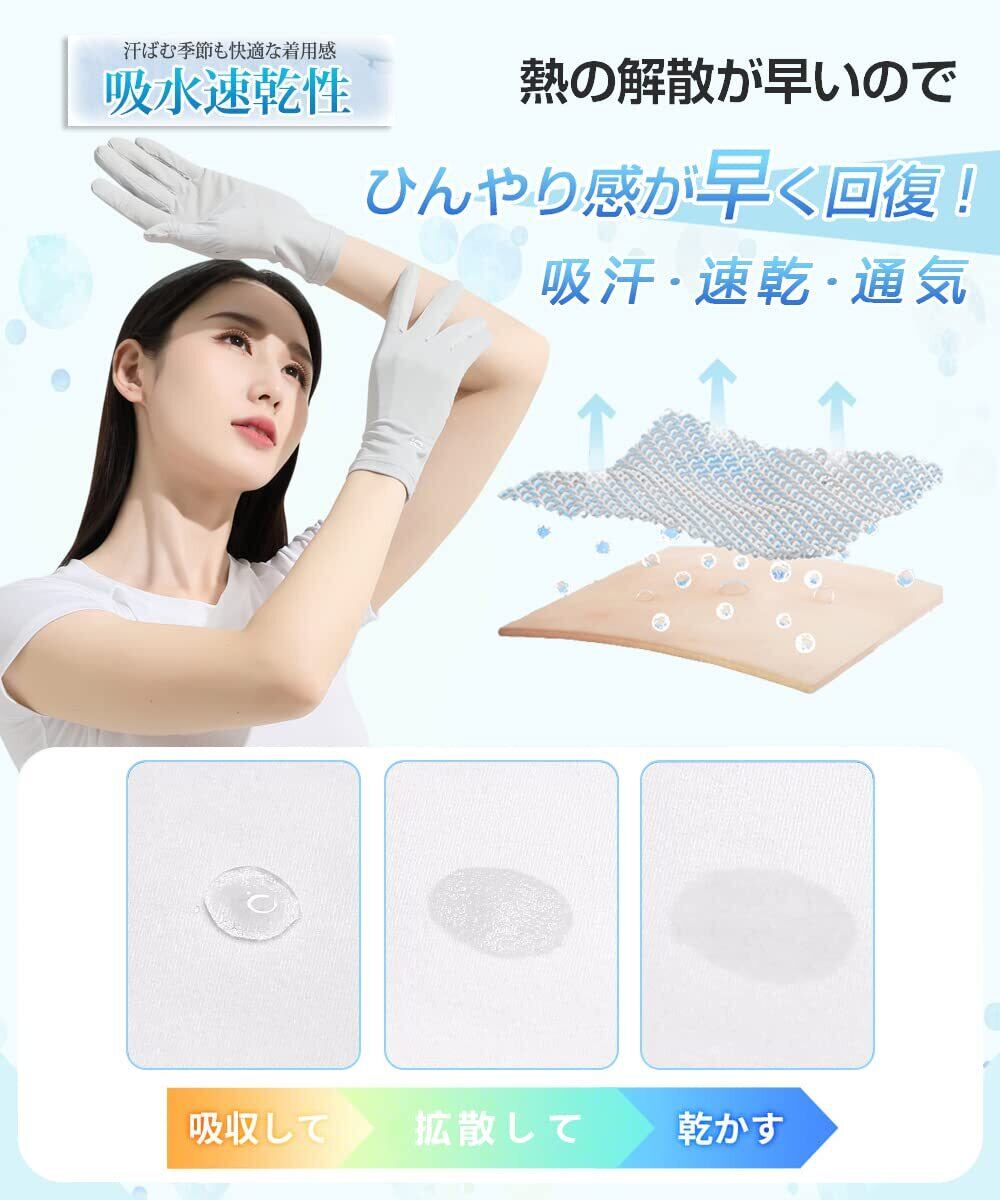 【接触冷感で暑い季節にうれしい】ひんやりしていて、春夏秋にピッタリのUVカット手袋です。冷感素材を採用して、水や汗で濡れると気化熱の作用により冷却効果があり、タッチすると涼しい感じがします。 吸湿性、放湿性も優れているので、蒸れなくサラサラとしたつけ心地で夏でも快適ご使用いただけます。