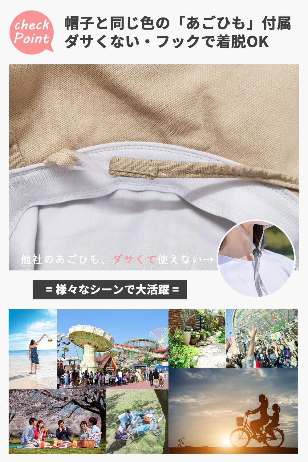 UVカット帽子 つば広 小顔効果 マジックテープ調節 あご紐 風で飛ばない 紫外線カット レディースハット 大きいサイズ 折りたたみ 携帯便利 アウトドア 自転車 春夏 日焼け防止 スカラハット