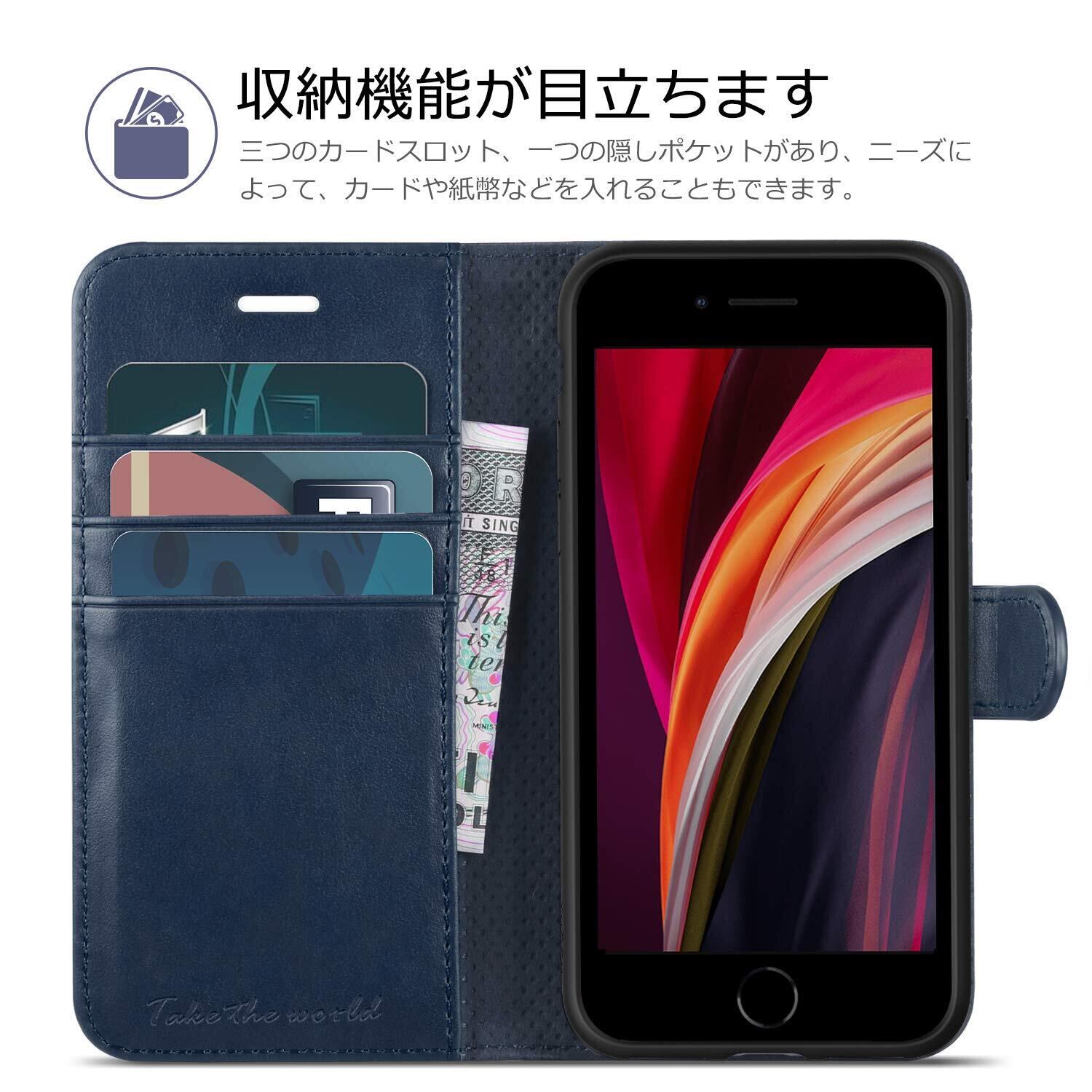 【在庫セール】TUCCH iPhone SE 対応 ケース 第3世代 iPhone SE2 ケース(2020) iphone8 ケース iphone7 ケース 手帳型 耐衝撃 耐摩擦 PU合皮 財布型 アイフォン7手帳型カバー カード収納 マグネット スタンド機能付きiPhone se2 ケース 手帳型 iPhone7/iPhone8/iPhoneSE2/iPhoneSE3 4.7インチ対応 ダークブルー | gsmshop