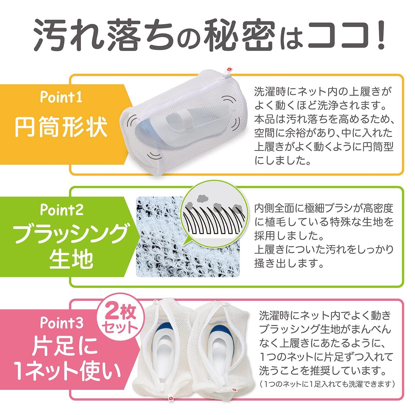 特徴3:片足ずつネットに入れることで洗浄力が高まる(2個入り)