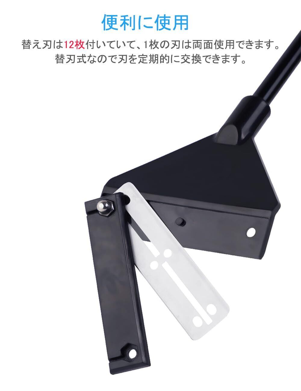 【ブレード幅62mm】替え刃は12枚付いていて、1枚の刃は両面使用できます。替刃式なので刃を定期的に交換できます。広いスクレーパーヘッドでガラス面のコケが効率的に掃除できます。また刃の角が丸く加工されているため、水槽のシリコンを傷つける心配がありません。