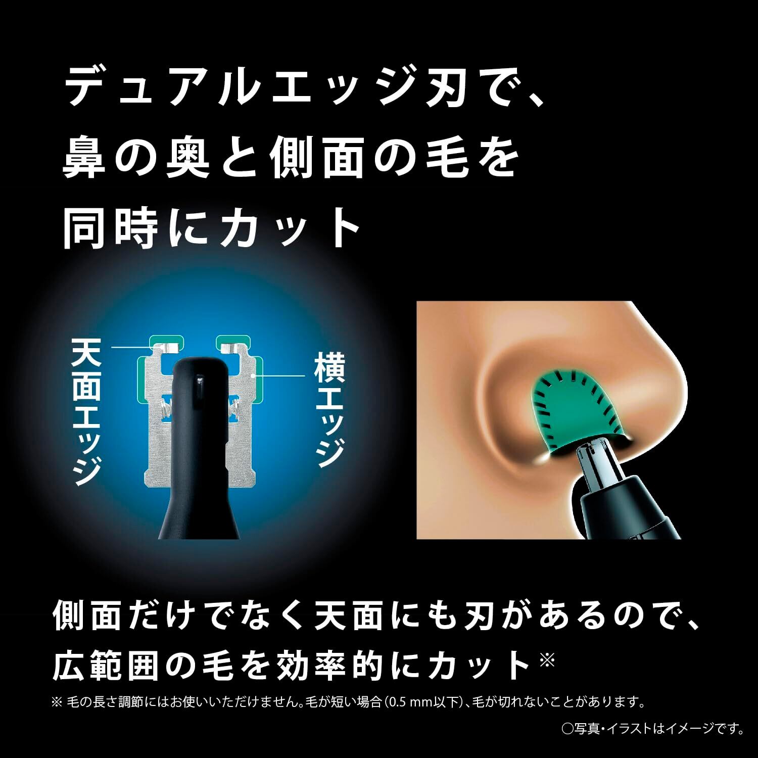 刃のエッジが天面と側面と2方向についているので、サイドの毛だけでなく鼻の奥の毛もカット。