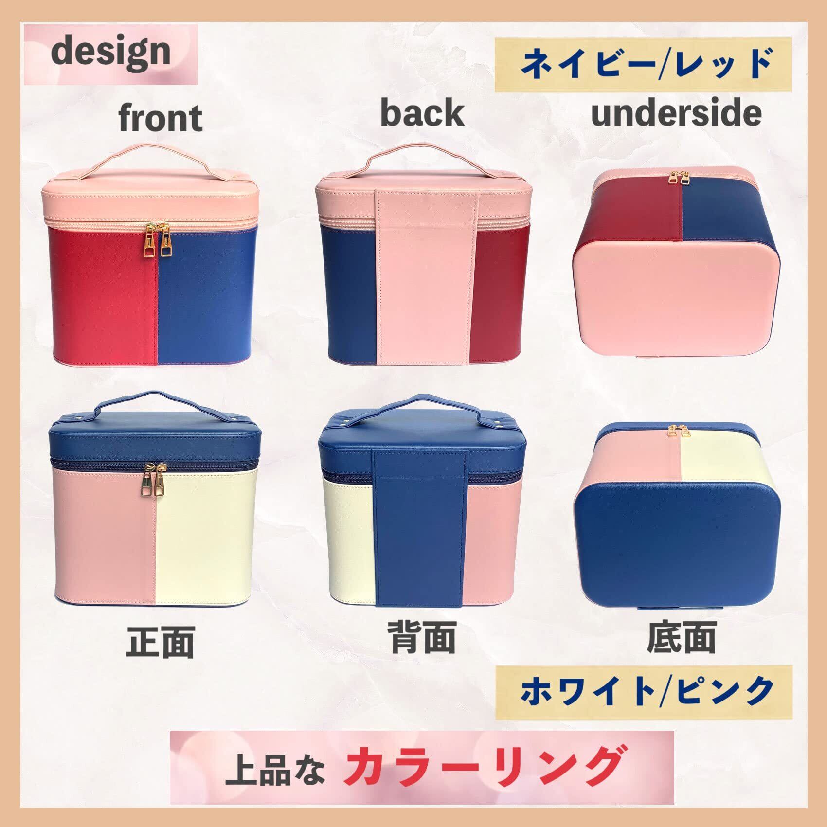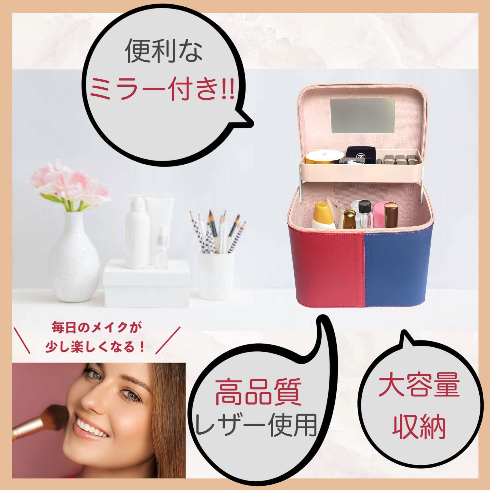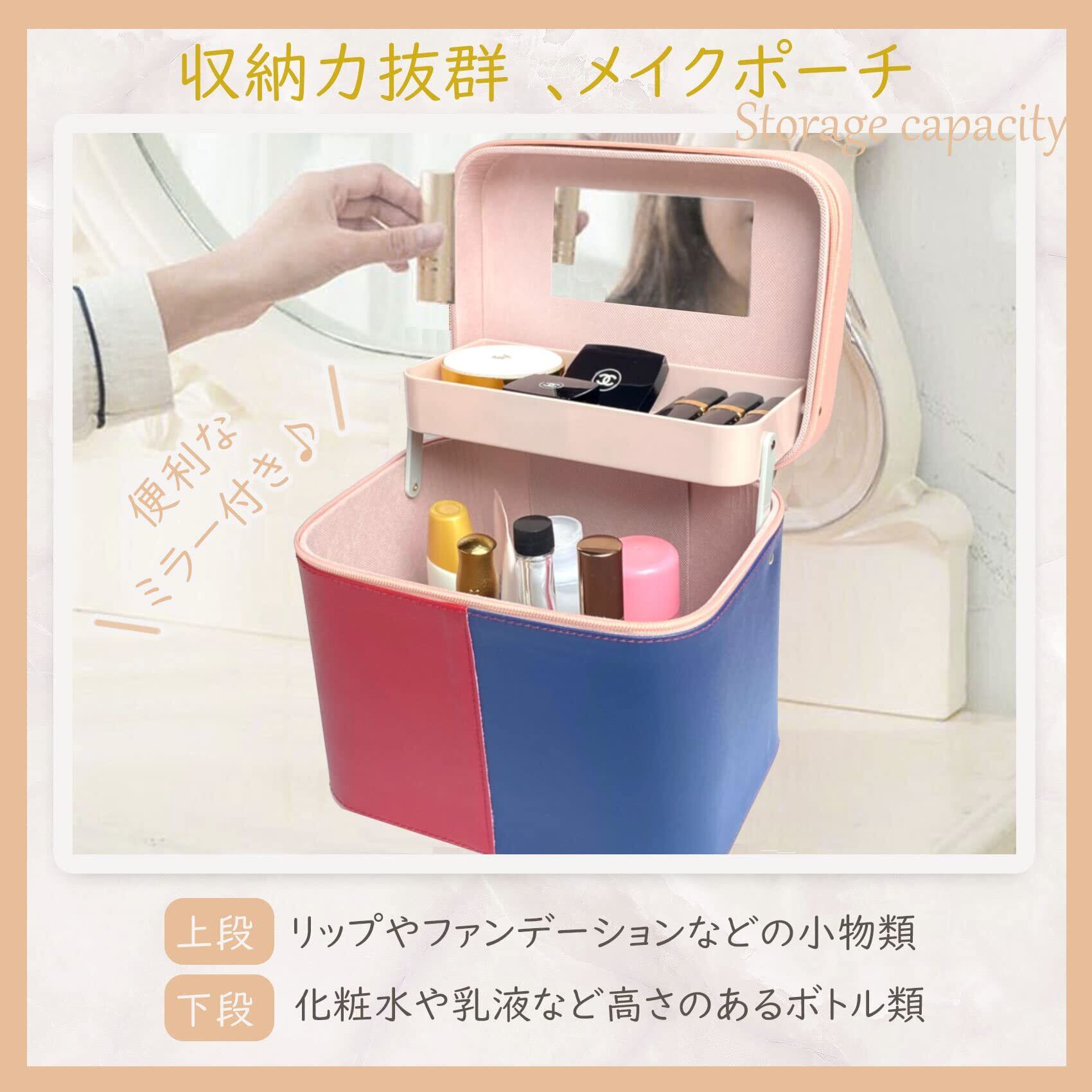 新カラー販売開始 セール お早めにお求め下さいツートンカラーがおしゃれな2段大容量 メイクボックス 【商品サイズ】約24cm×17.5cm×高さ20.8cm (ミラー付き) 【カラー】 ピンク / ホワイト (上部:ネイビー)