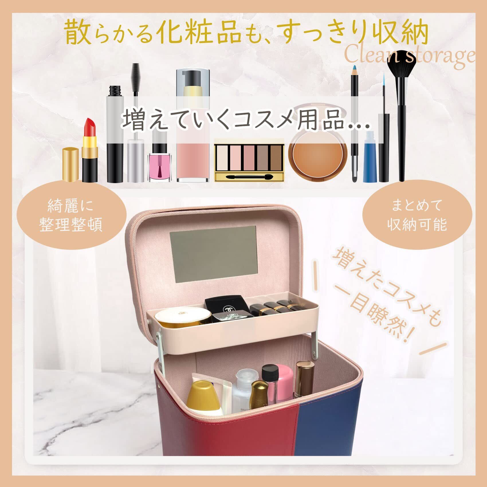 【人気商品】【Pearpark】 メイクボックス 3カラー 鏡付き コスメボックス 大容量 持ち運び お洒落 かわいい メイク収納 コスメ収納 化粧品収納ボックス プロ用 綺麗 ミラー 収納ケース 上品 カラーリング (レッド/ネイビー) | gsmshop