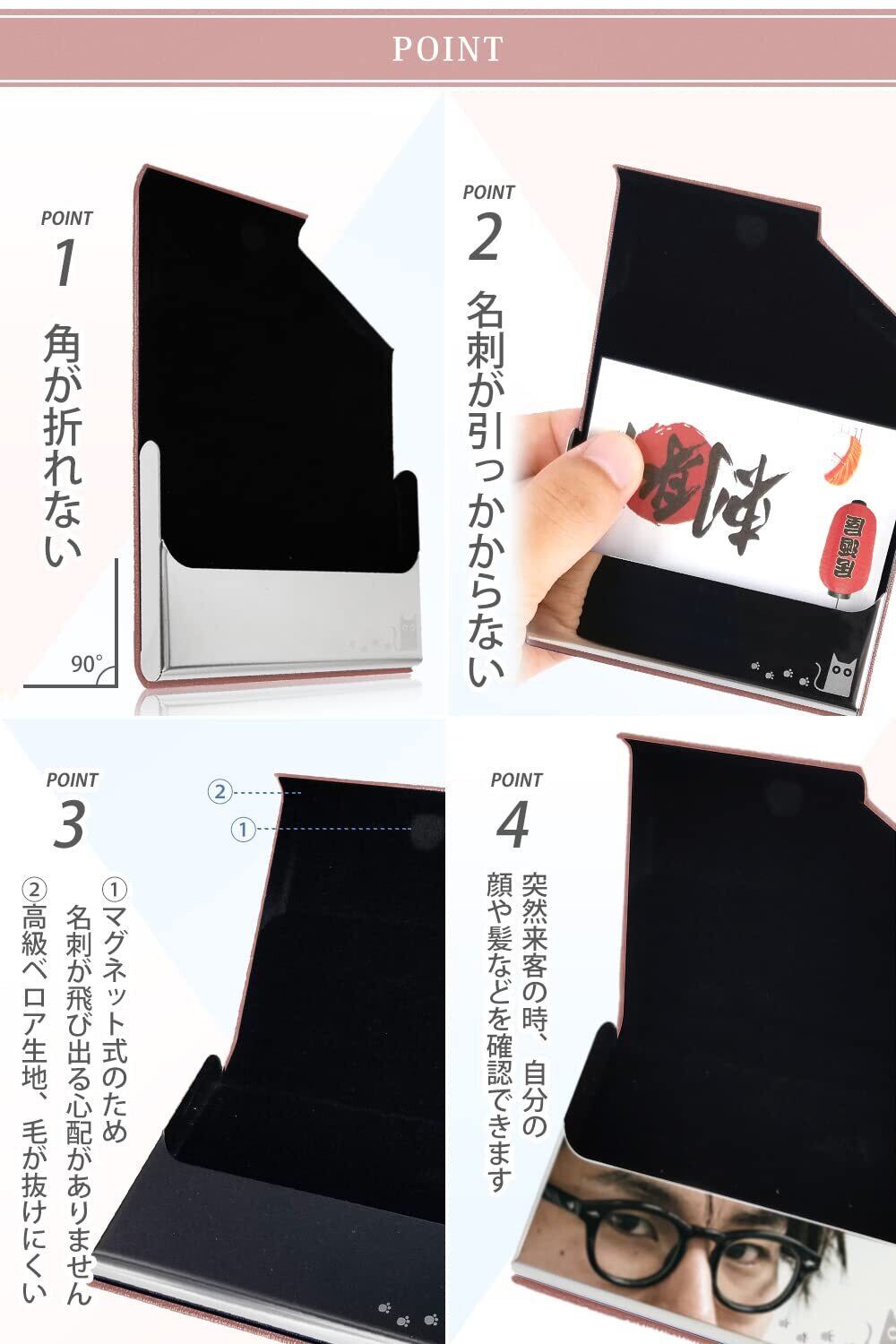 【飛び出る防止】マグネット式のため、持ち歩きの際に名刺が飛び出ることを完全防止◎