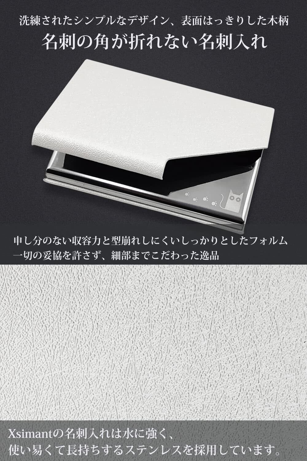[Xsimant] 名刺入れ 角が折れない 名刺ケース 猫 柄 マグネット式 1秒開閉 レディース メンズ ビジネス (白)