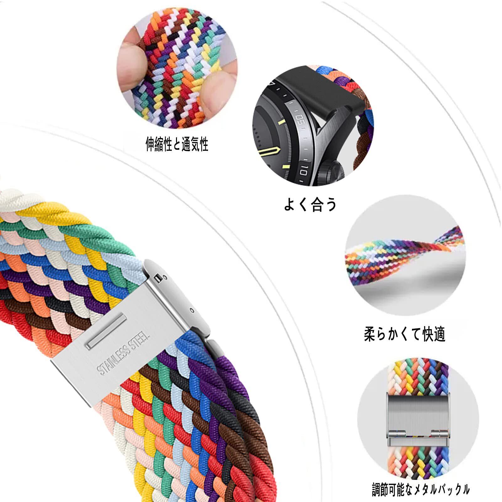 AGUPERFIT 時計バンド 20mm 22mm 無段階に調整なステンレスバックルブレイデッドソロループベルト ファッションで快適な伸縮性で通気性の良いクイックリリースストラップ 腕時計とスマートウォッチ換えバンド (20mm, グラデーショングレー)