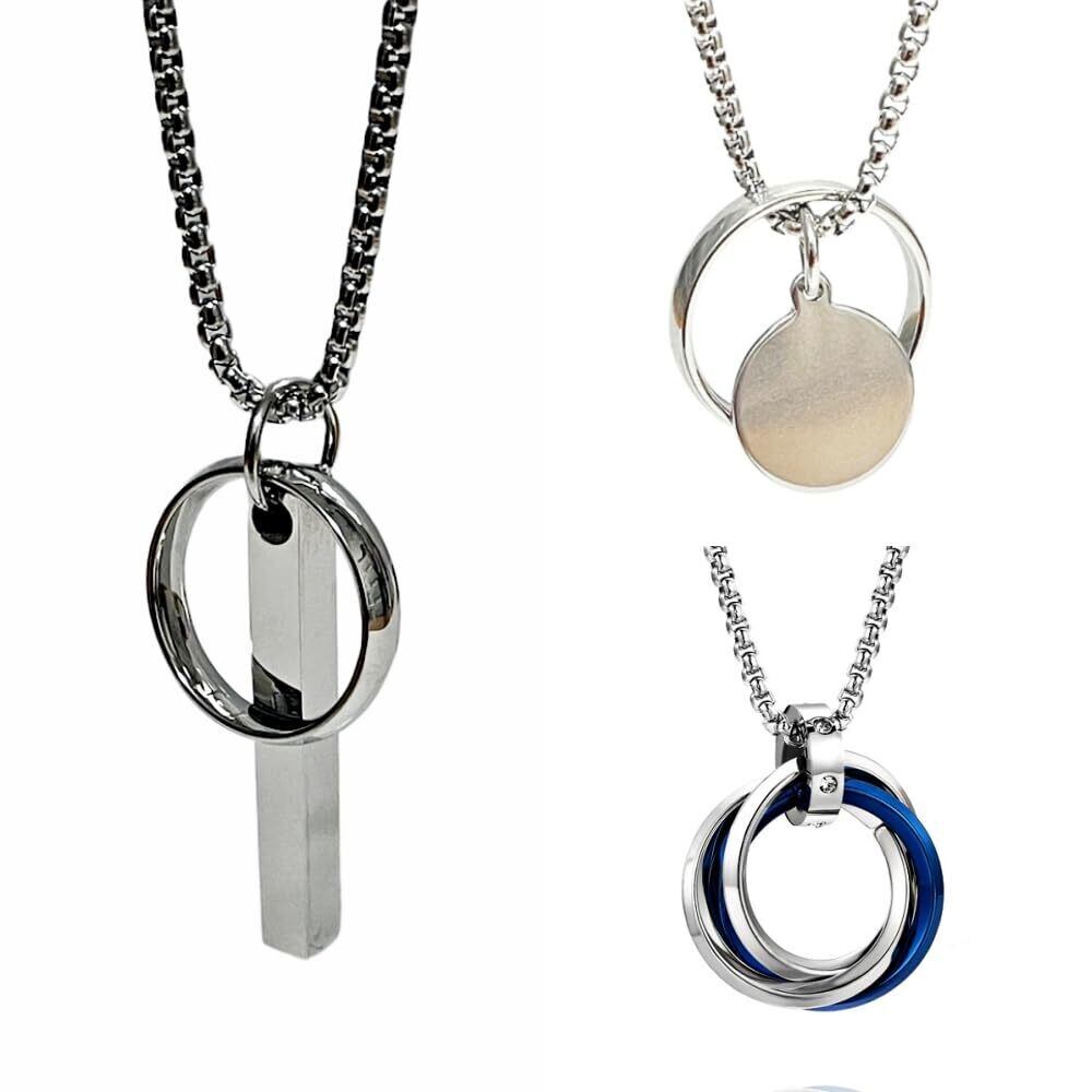 【数量限定】[YAHANE] ネックレス メンズ ペンダント ダブルリング 3連リング シンプル ステンレス アクセサリー シルバー ブルー ブラック ゴールド トップ ジュエリー アレルギーフリー 防水 | gsmshop