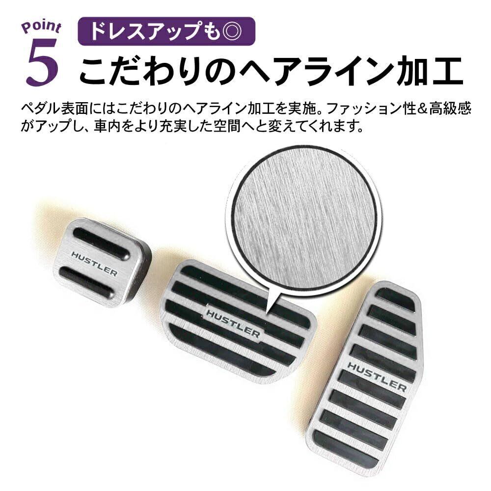 SAWAKAKI スズキ ハスラー MR52S MR92S 専用 アルミアクセルペダル ブレーキペダルカバー パーキングブレーキペダル 3個セット(シルバー)