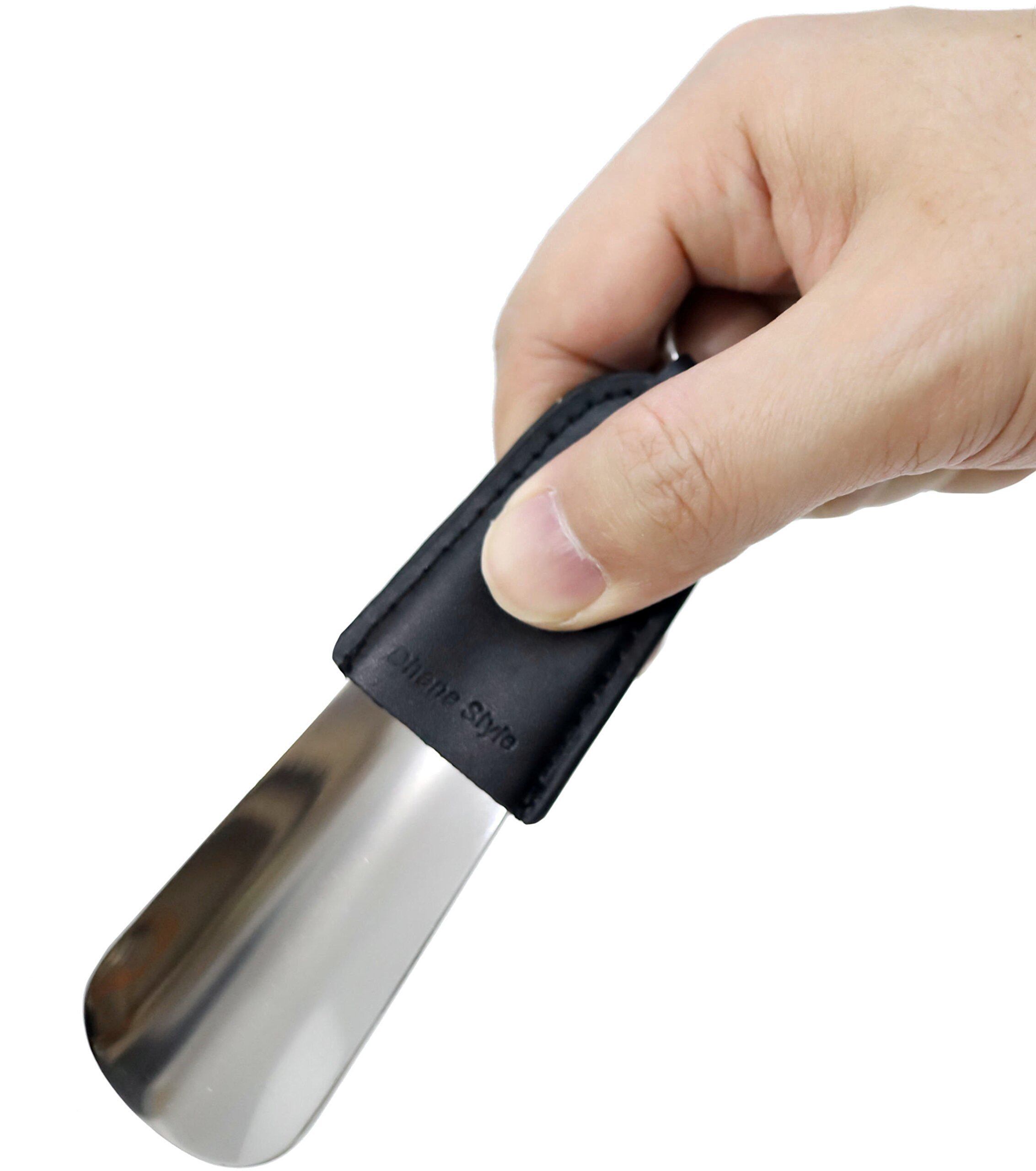 無地・シンプルなデザイン、艶消し加工を施した足のかかとに沿う滑らかなカーブのコンパクトなポータブル靴べら: 上部に窪みがあるのグリップ性の良い持ち手タブがついているのでしっかりとフィットして握れます。耐久性に優れたステンレス製でストレスなく足入れが出来る使い勝手のよい携帯用靴べらです。ご自身でお手入れが出来るのでお座敷のある飲食店、外出先、旅行・トラベル、アウトドア・レジャー、出張・お仕事・ビジネス・営業活動等での訪問先、などで不特定多数の人が使用した共用の靴べらを使用しなくて済みますので衛生的です。 手のひらサイズで持ち運び・携帯性が良く気軽に持ち運べて便利です。保管も場所をとらずにポケットやカバン・バッグへの収納も省スペースで場所を取りません。