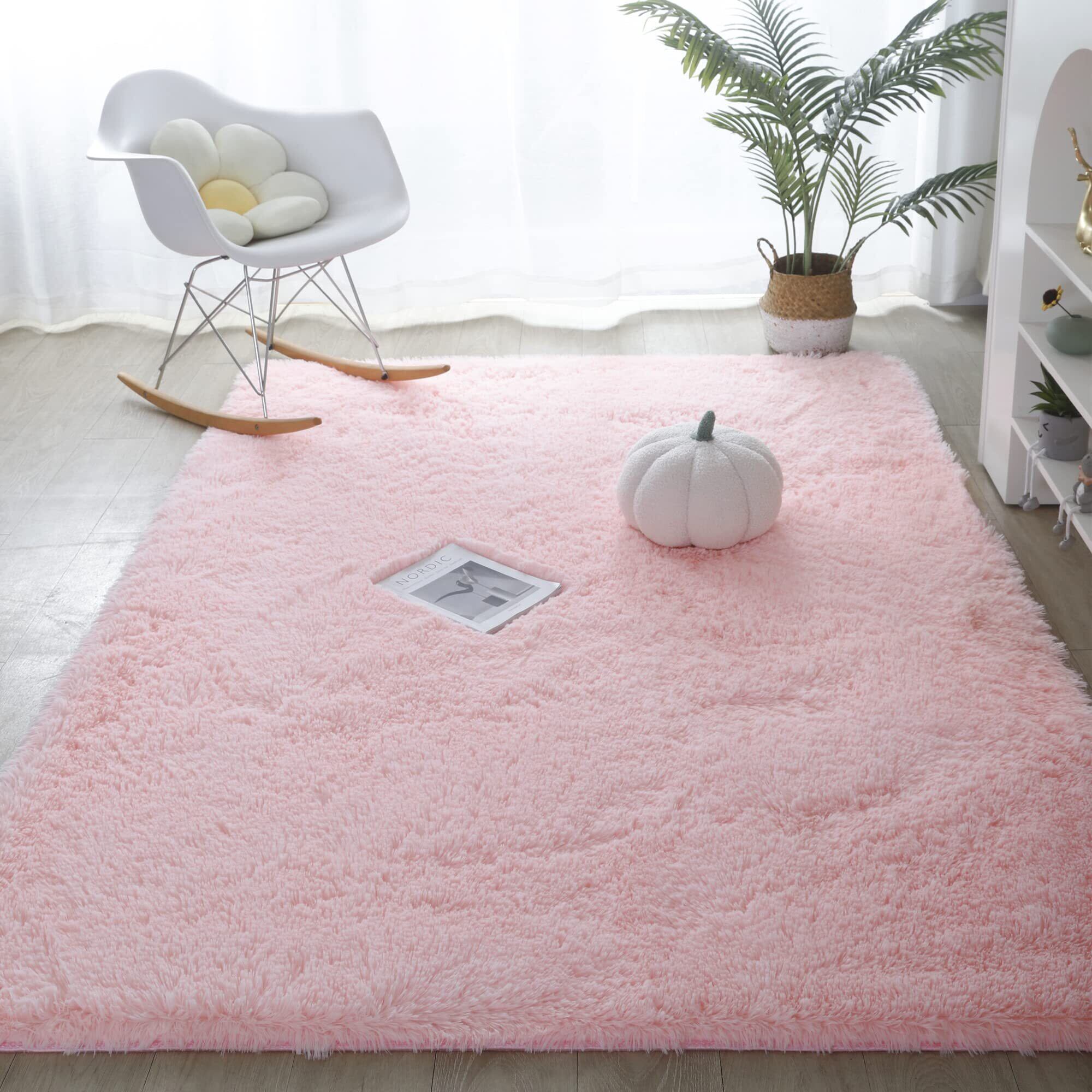 【2022最新】カーペット ラグ 洗える ラグマット 滑り止め付 防ダニ 抗菌 防臭 4色選べる 1年中使えるタイプ 北欧 ふわっと手触り 優しいフランネルラグ 絨毯 折り畳み (120x160cm, ライトピンク) | gsmshop