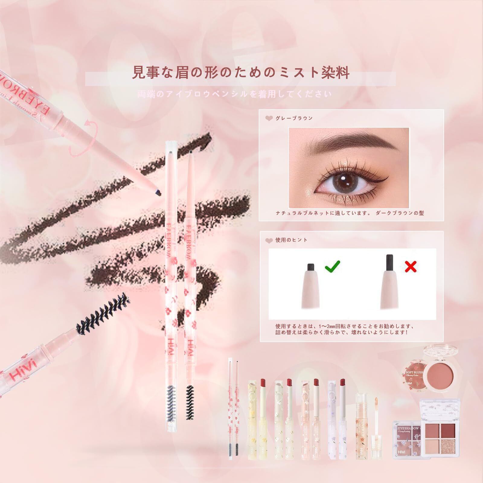 完璧な化粧品セット: 口紅、チーク、アイシャドウ、コンシーラー、アイブロウペンシルが含まれています。