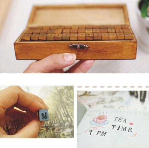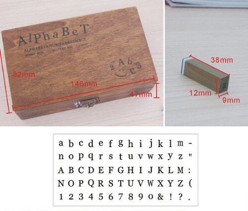 [ノーブランド品] 長方形 [アウトレット品] 限定・アンティークなイニシャル&数字スタンプ70個 木箱入り 活字タイプ
