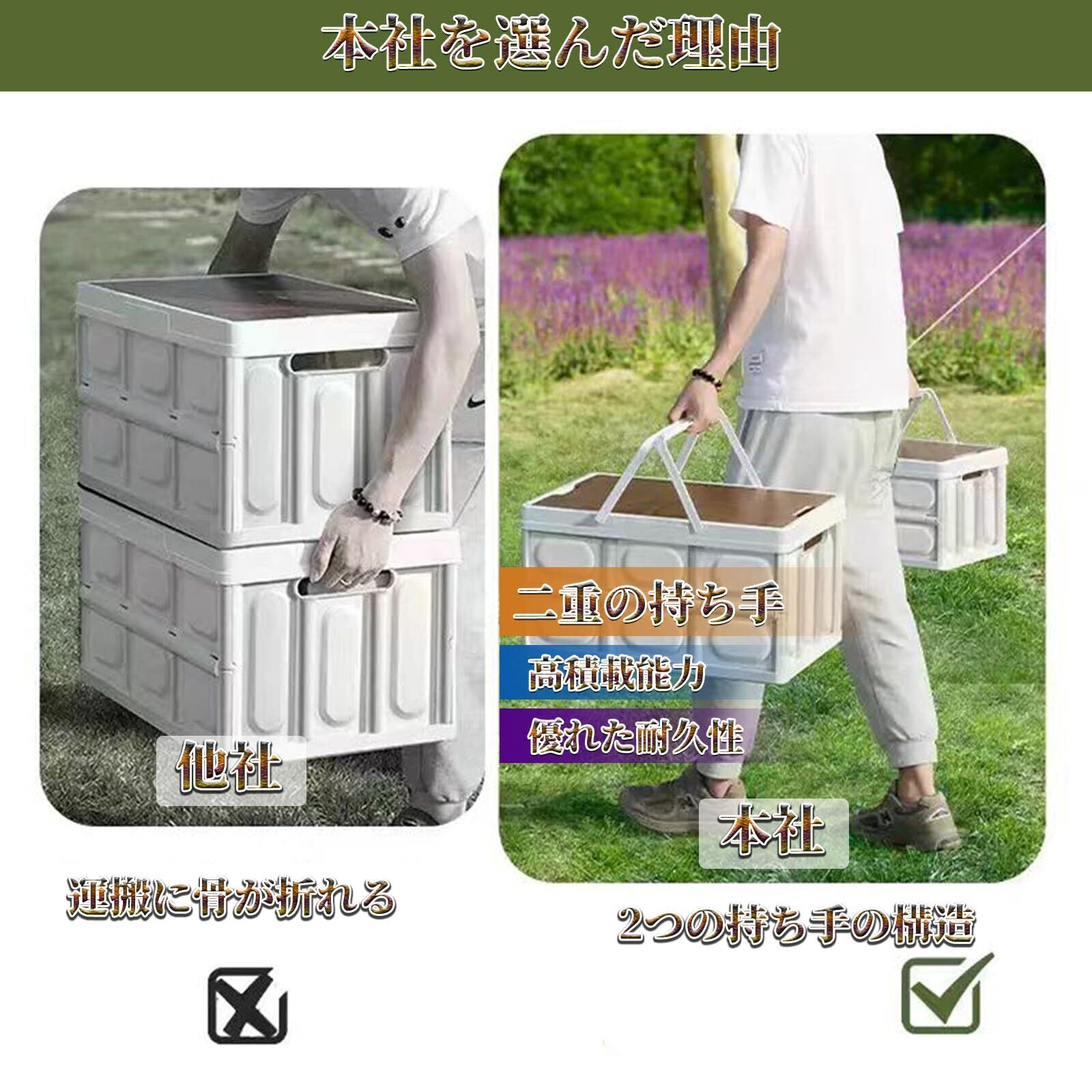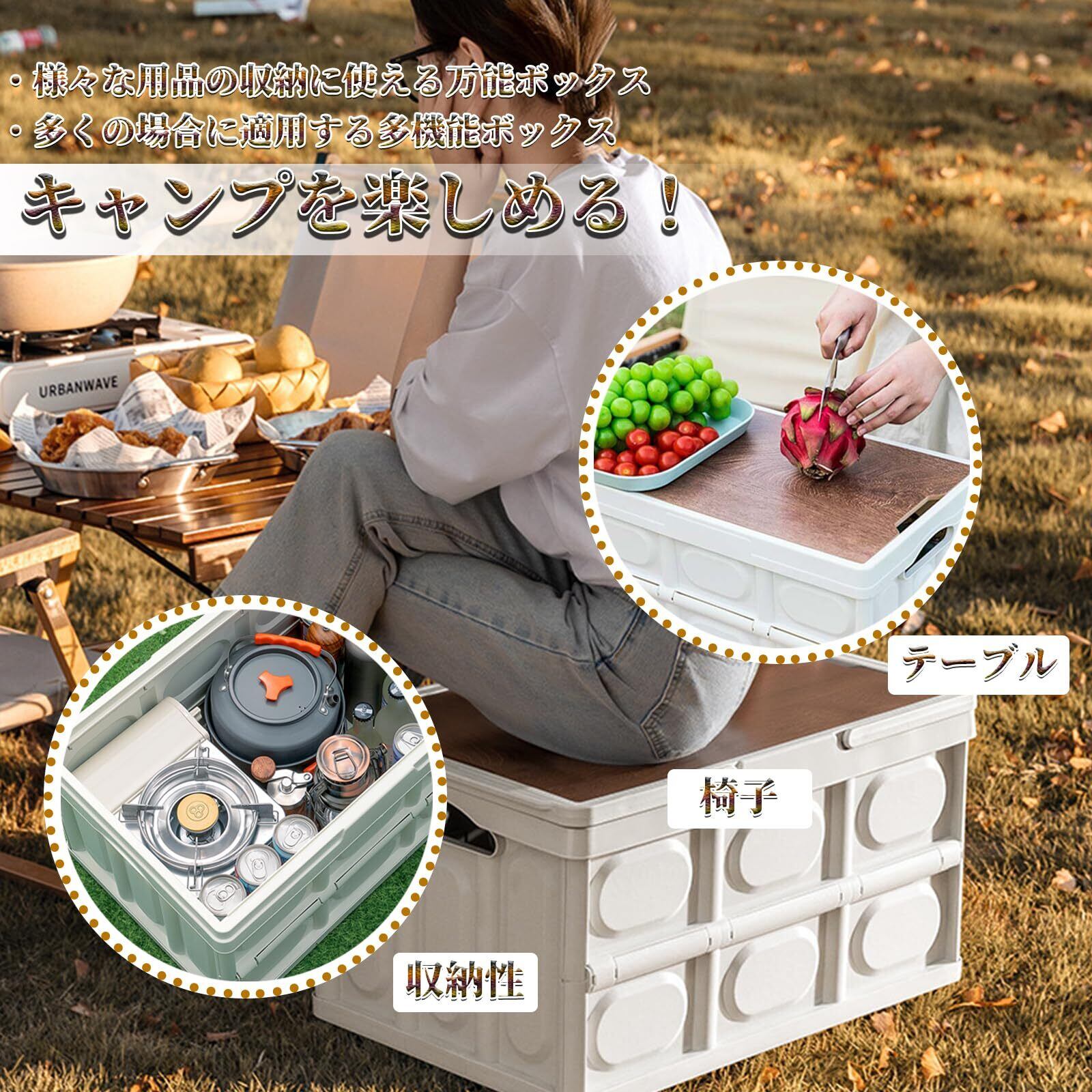 【汎用性・多用途】収納ボックスは車載用、室外用、アウトドア、キャンプ、家庭用、オフィス、会社、店舗用の収納に適用することができます。車載用ではトランクに水、道具などの小物収納にも大活躍します。車内の快適性を高め、車のグレードが向上し満足感を得られます。また、室内用にキッチンやリビング、寝室でも利用可能、収納しながらおしゃれなテーブルを演出できます。アウトドア用にキャンプやピクニックに調理器具や小物キャンプ用品はたくさん収納できます。