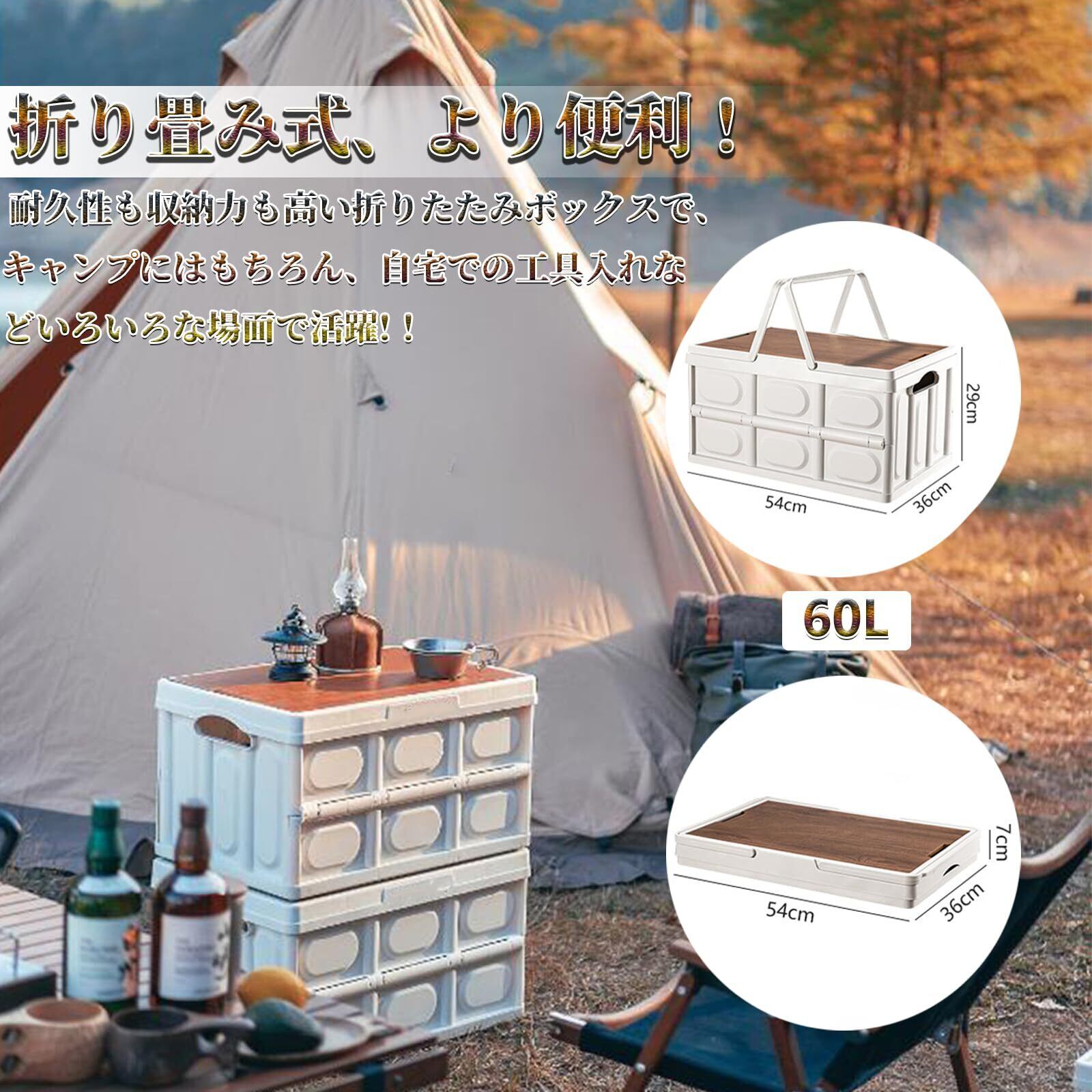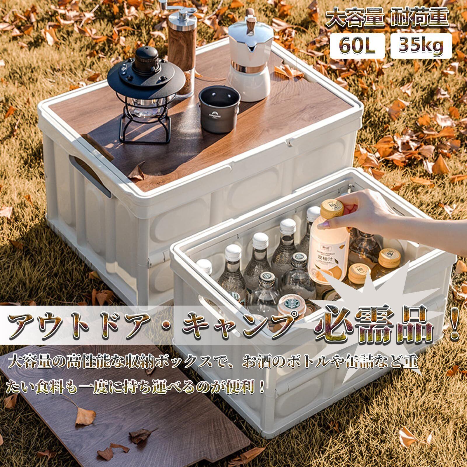 【特価商品】Yoseka キャンプ 収納ボックス 折りたたみ 60L 持ち手 収納ボックス キャンプ用品 アウトドアボックス コンテナ ボックス 折り畳み キャンプ ボックス 収納ボックス 蓋付き コンテナボックス 収納 大容量 60L ホワイト | gsmshop