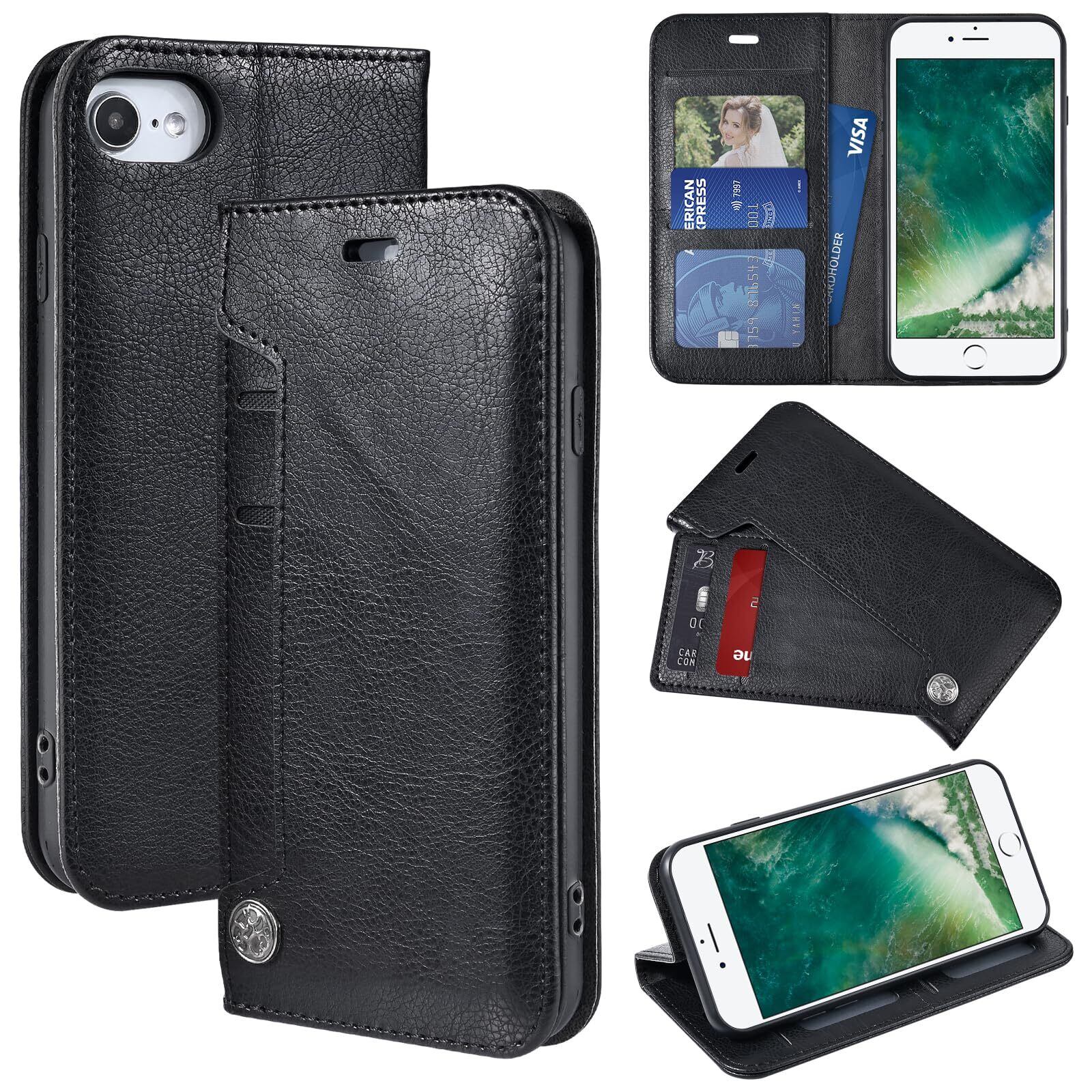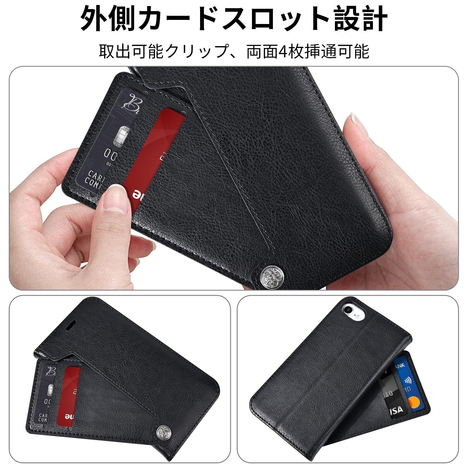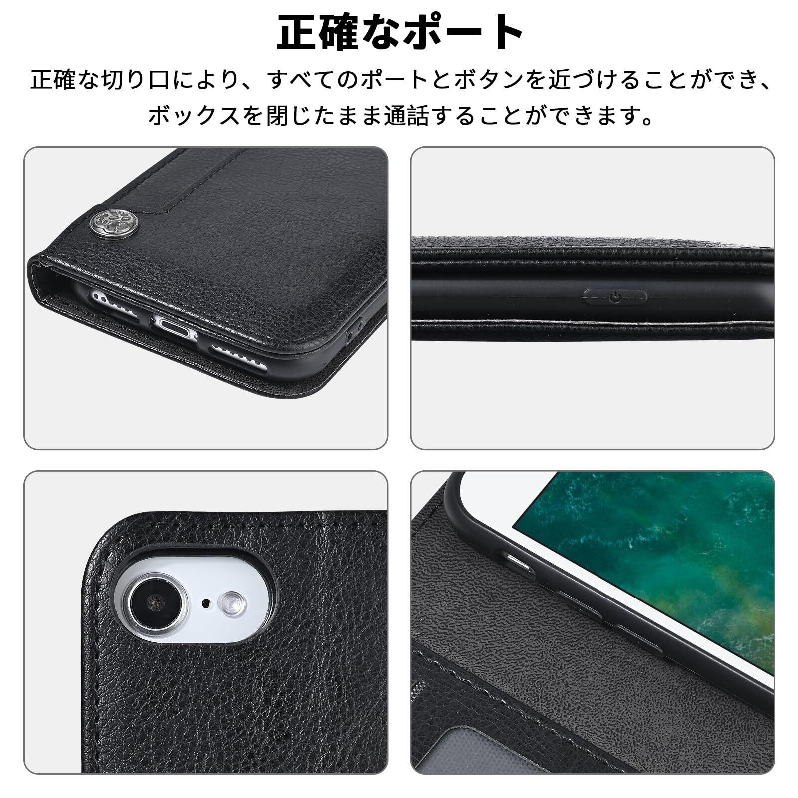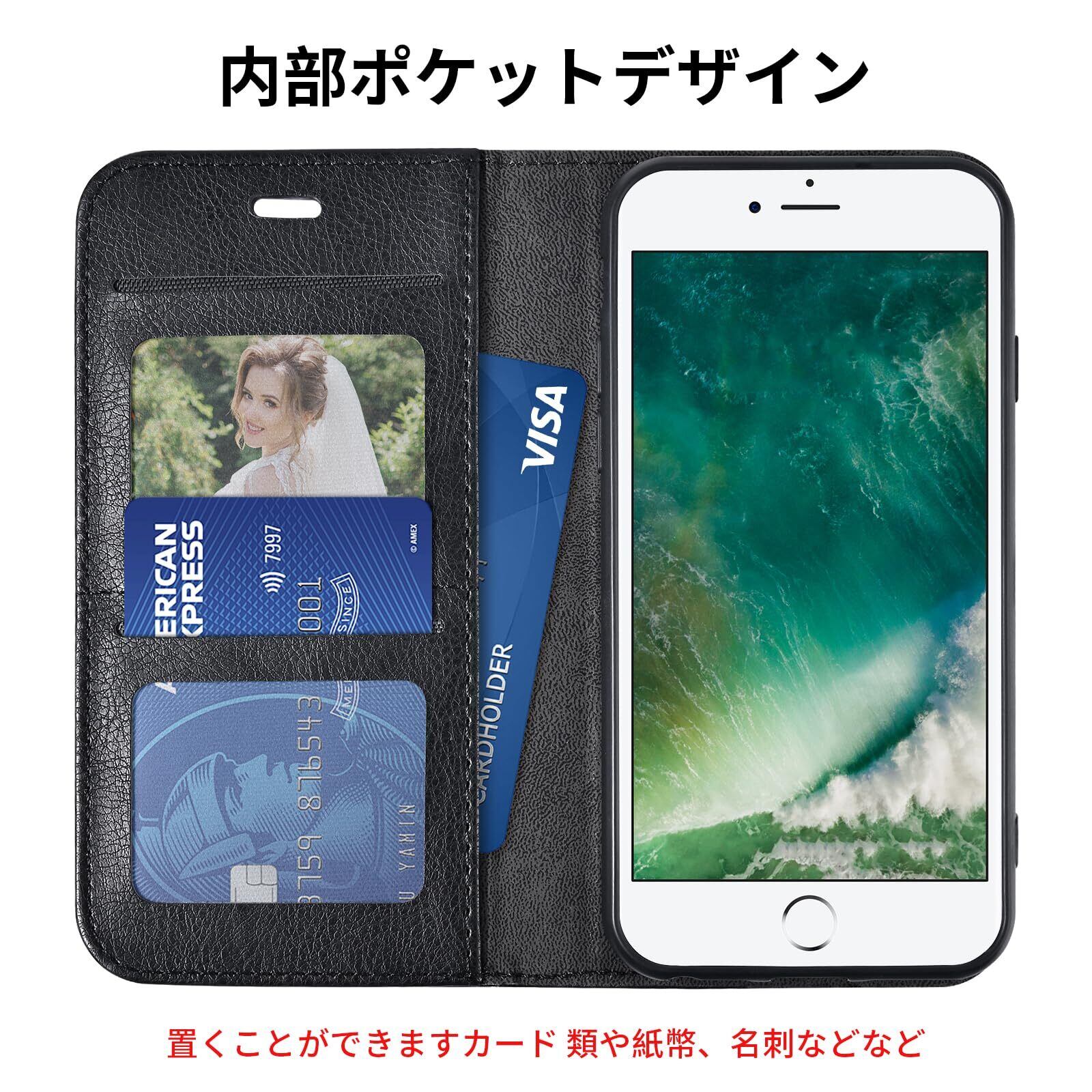 OwnestX iPhone 7/8/SE2 用ケース 手帳型 おしゃれ 携帯ケース カード収納 マグネット式 スタンド機能 スマホケース PUレザー 擦り傷防止 全面保護 衝撃吸収 耐衝撃 携帯カバー-ブラック