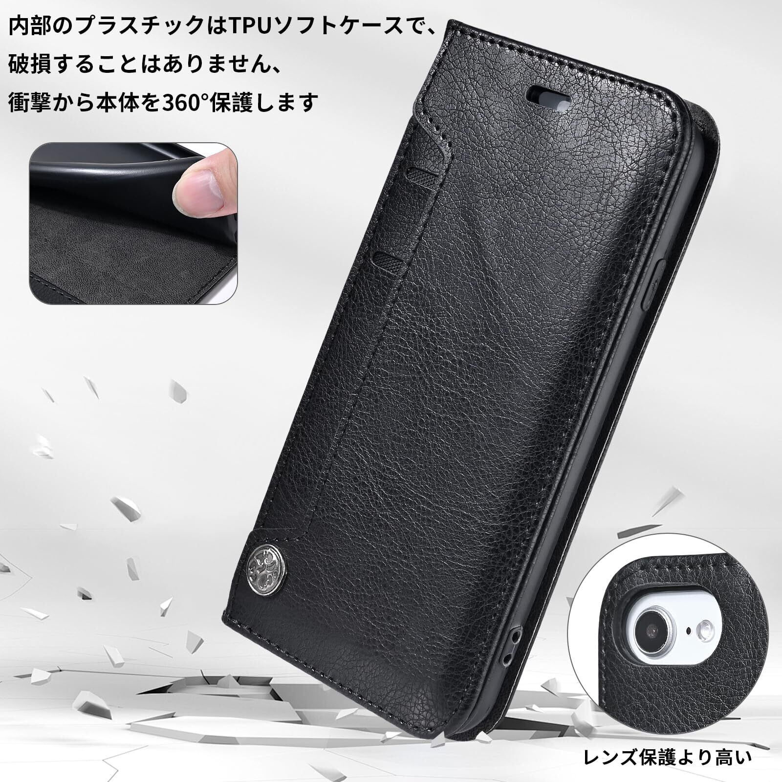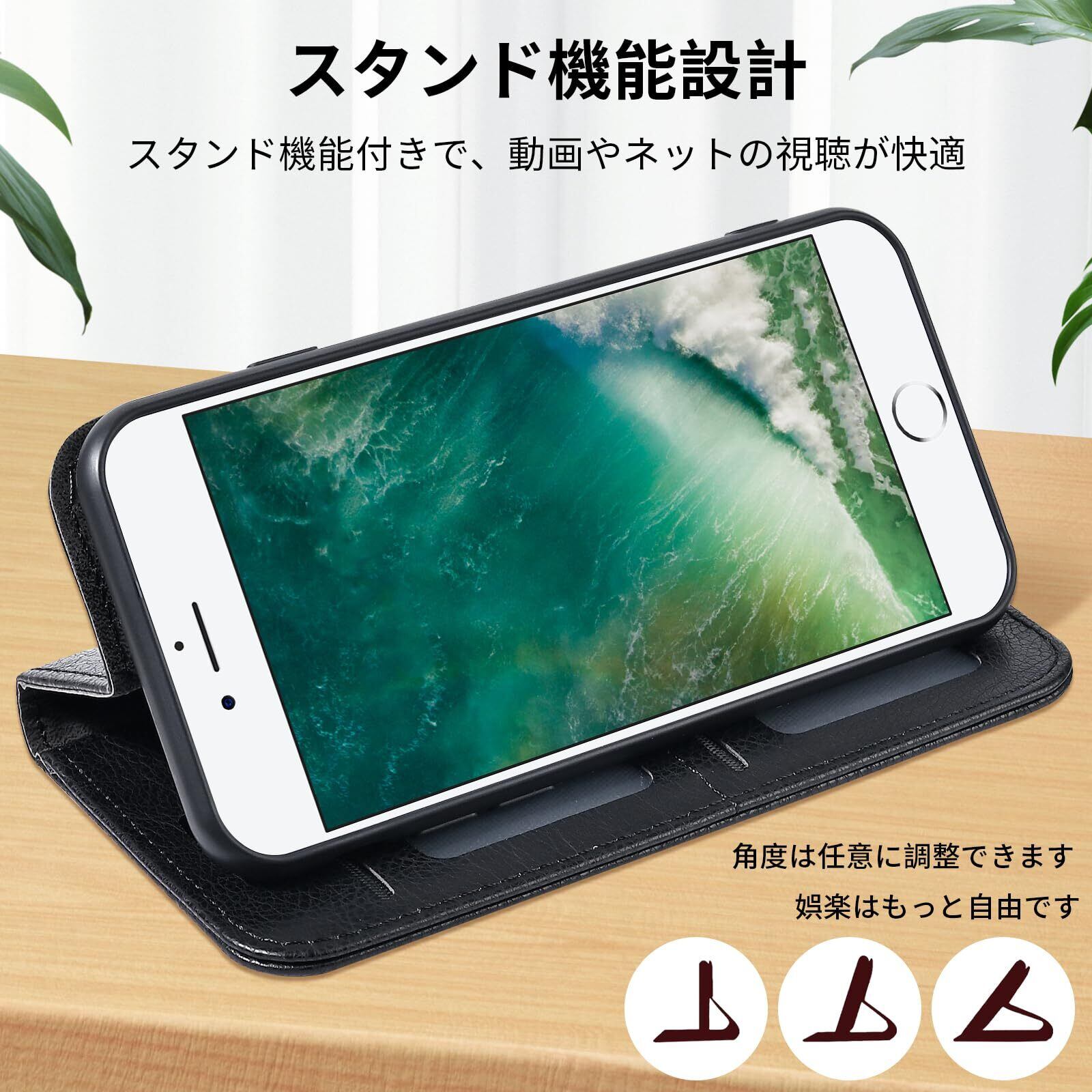 【新春セール】OwnestX iPhone 7/8/SE2 用ケース 手帳型 おしゃれ 携帯ケース カード収納 マグネット式 スタンド機能 スマホケース PUレザー 擦り傷防止 全面保護 衝撃吸収 耐衝撃 携帯カバー-ブラック | gsmshop