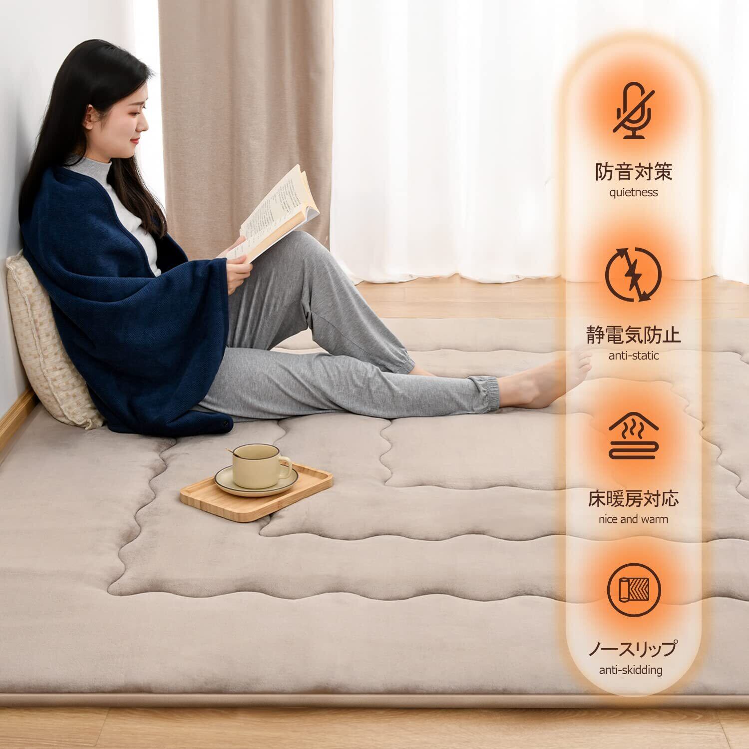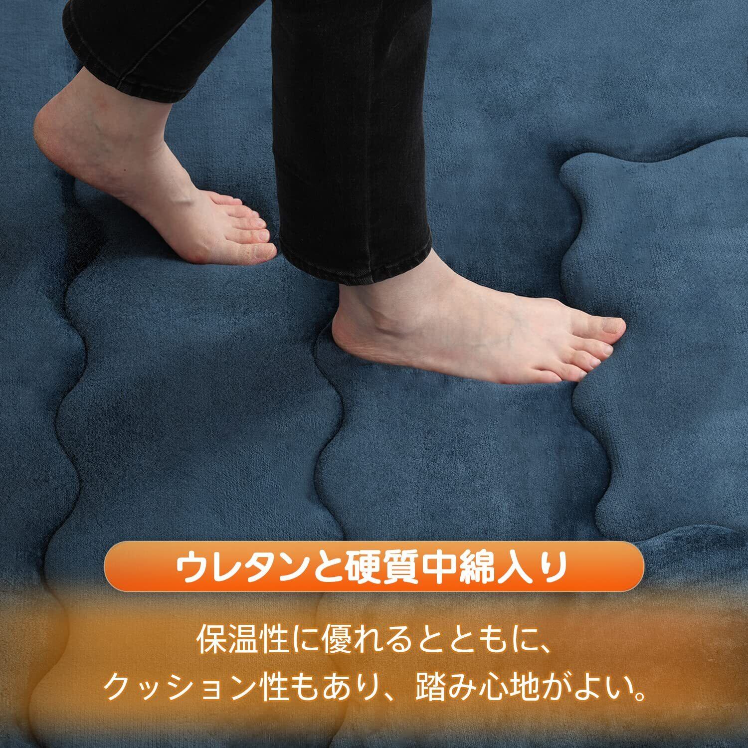 【下からの冷えを遮断】15mmの硬質ワタ+ふかふかの中綿入り、下からの冷えを遮断する。適度なクッション性で豪華な踏み心地を与える。