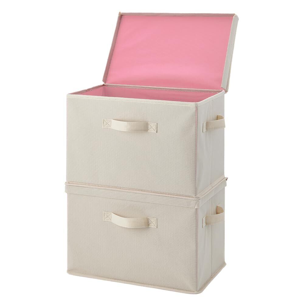 【2022最新】アイメディア(Aimedia) 収納ボックス 2個セット ベージュピンク 折りたたみ フタ付き 不織布 大容量 24L 整理ボックス 収納ケース 衣装ケース 衣類収納 積み重ね フタ付整理箱 おしゃれ | gsmshop