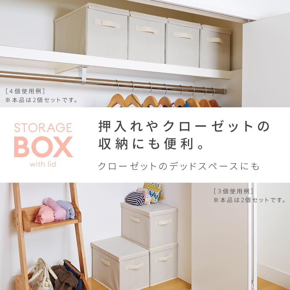 アイメディア(Aimedia) 収納ボックス 2個セット ベージュピンク 折りたたみ フタ付き 不織布 大容量 24L 整理ボックス 収納ケース 衣装ケース 衣類収納 積み重ね フタ付整理箱 おしゃれ
